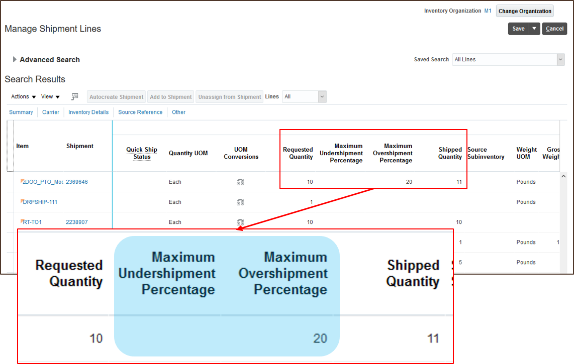 - Manage Shipment Tolerances for Sales Orders feature, available in Oracle Order Management Cloud What's New, update 20A.