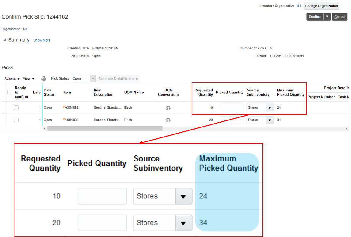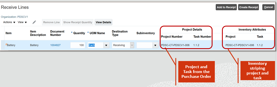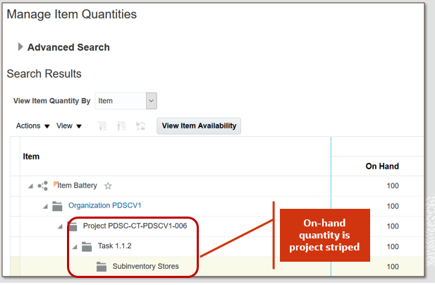 - Query and review for on-hand inventory based on project and task.