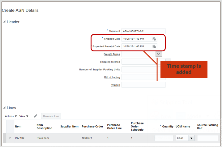 - Shipped Date and Expected Receipt Date on the Create ASN page