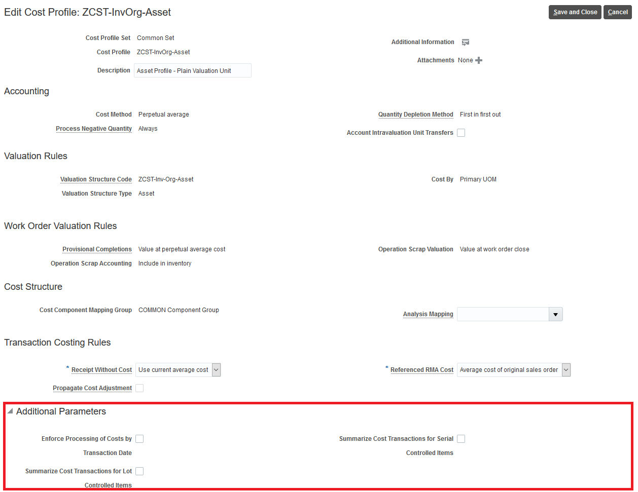 Cost Profile Setup