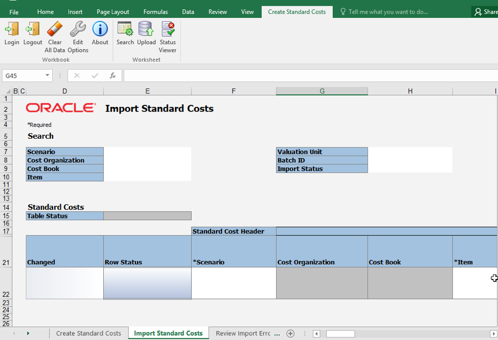 The newly added Import Standard Costs worksheet is specifically designed to support uploading more standard cost records.