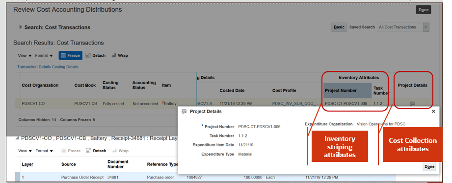 - Better usability of the Review Cost Accounting Distributions page since the cost transactions are summarized instead of transactions at lot or serial number level.