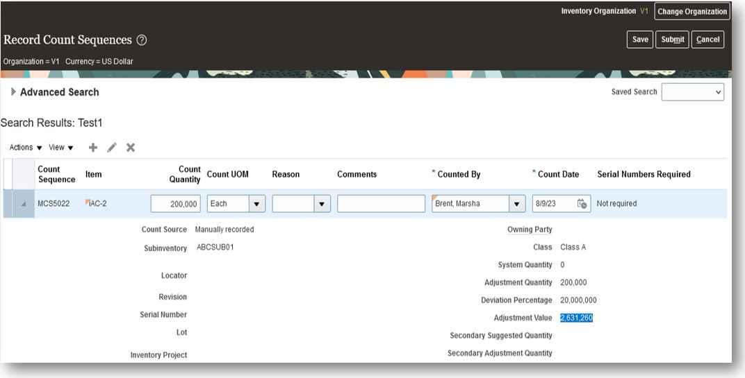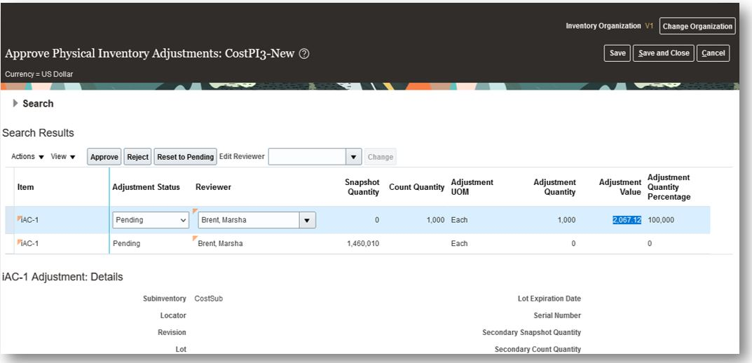 - View Improved Adjustment Value in Physical and Cycle Counts
