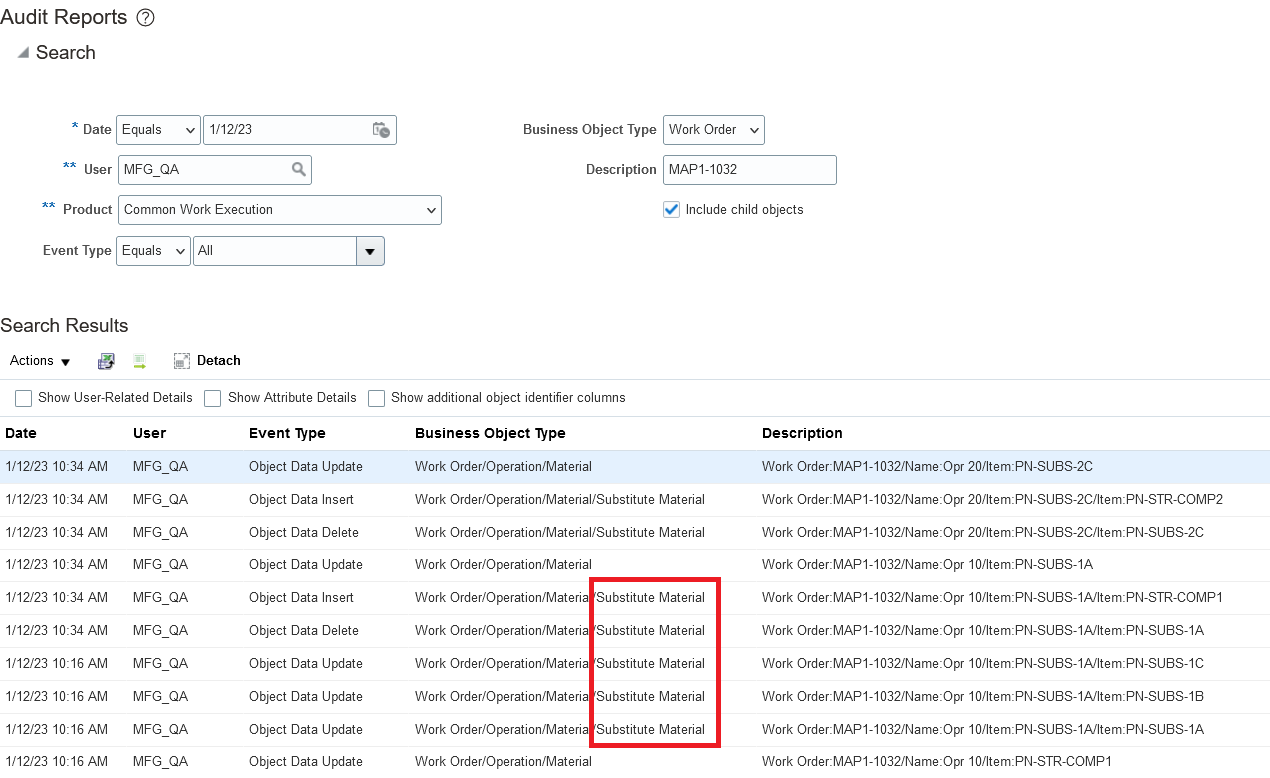 Prior to this update, you could view and replace the substitute items on discrete work orders before release to the shop floor.