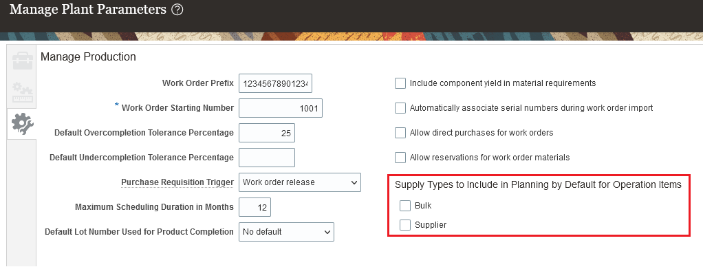 This feature provides flexibility in determining if supplier and bulk supply type items must be planned.