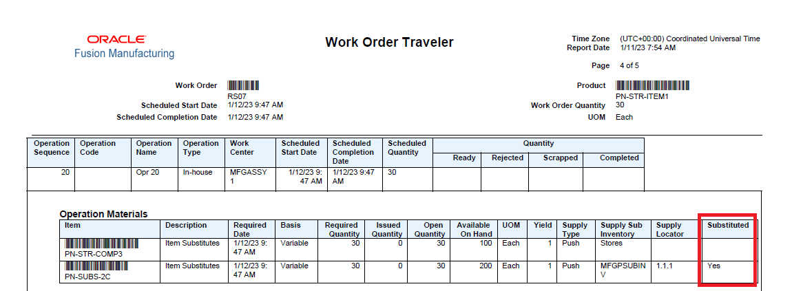 Work order traveler and component list reports now include items substitution information for both discrete and process work orders.