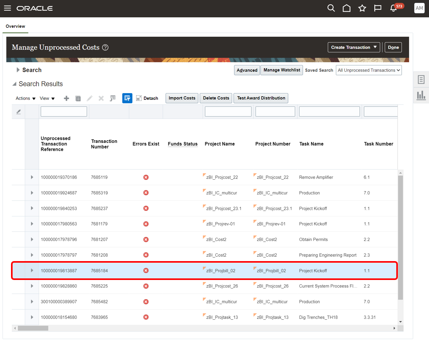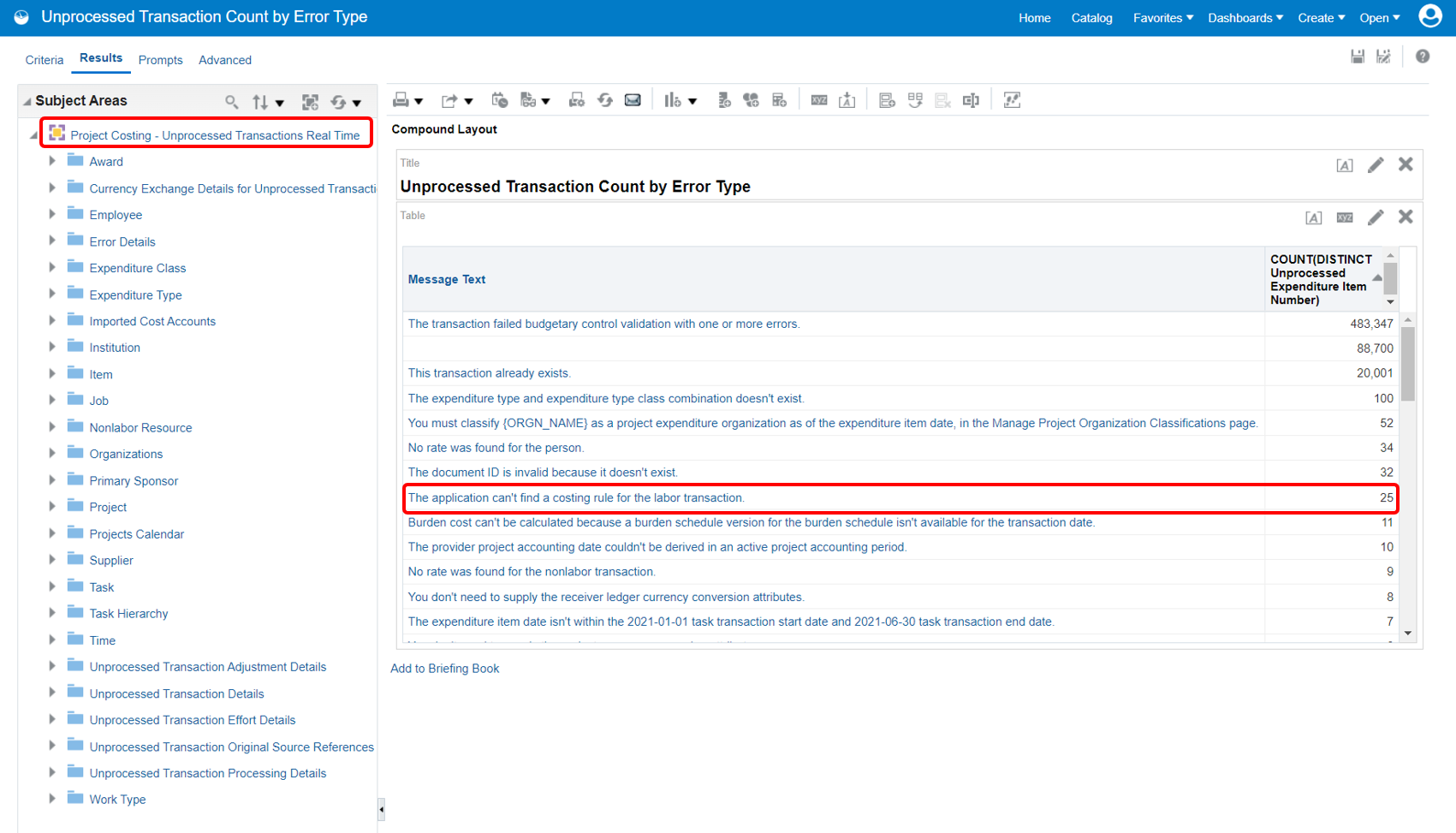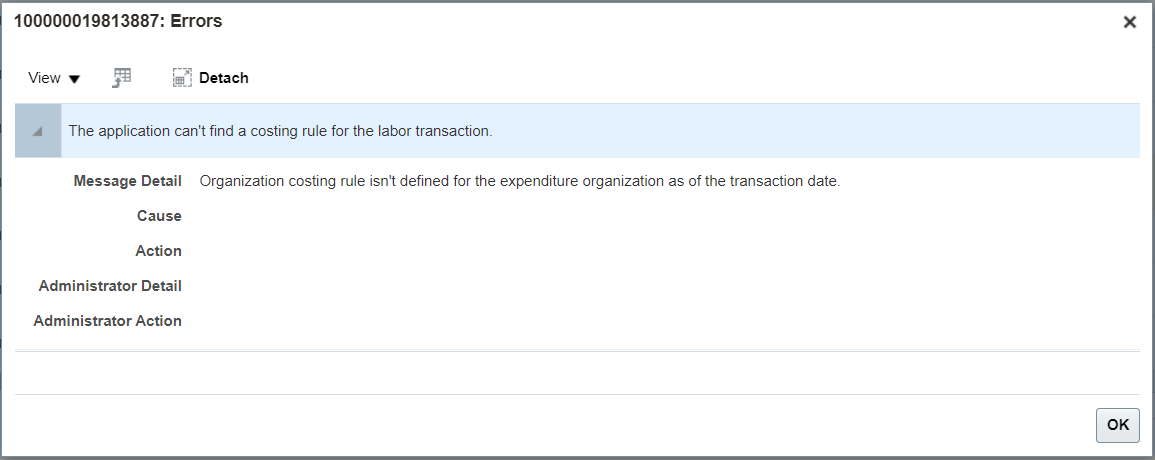 - Resolve Account Derivation Exceptions More Effectively: Improvements to error messages displayed during derivation failures of budget accounts and depreciation expense accounts that use the transaction account builder definitions for Project Costing. This helps with effective error resolution as the error messages now point to an actionable insight.