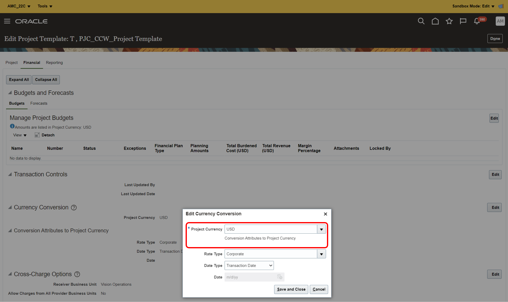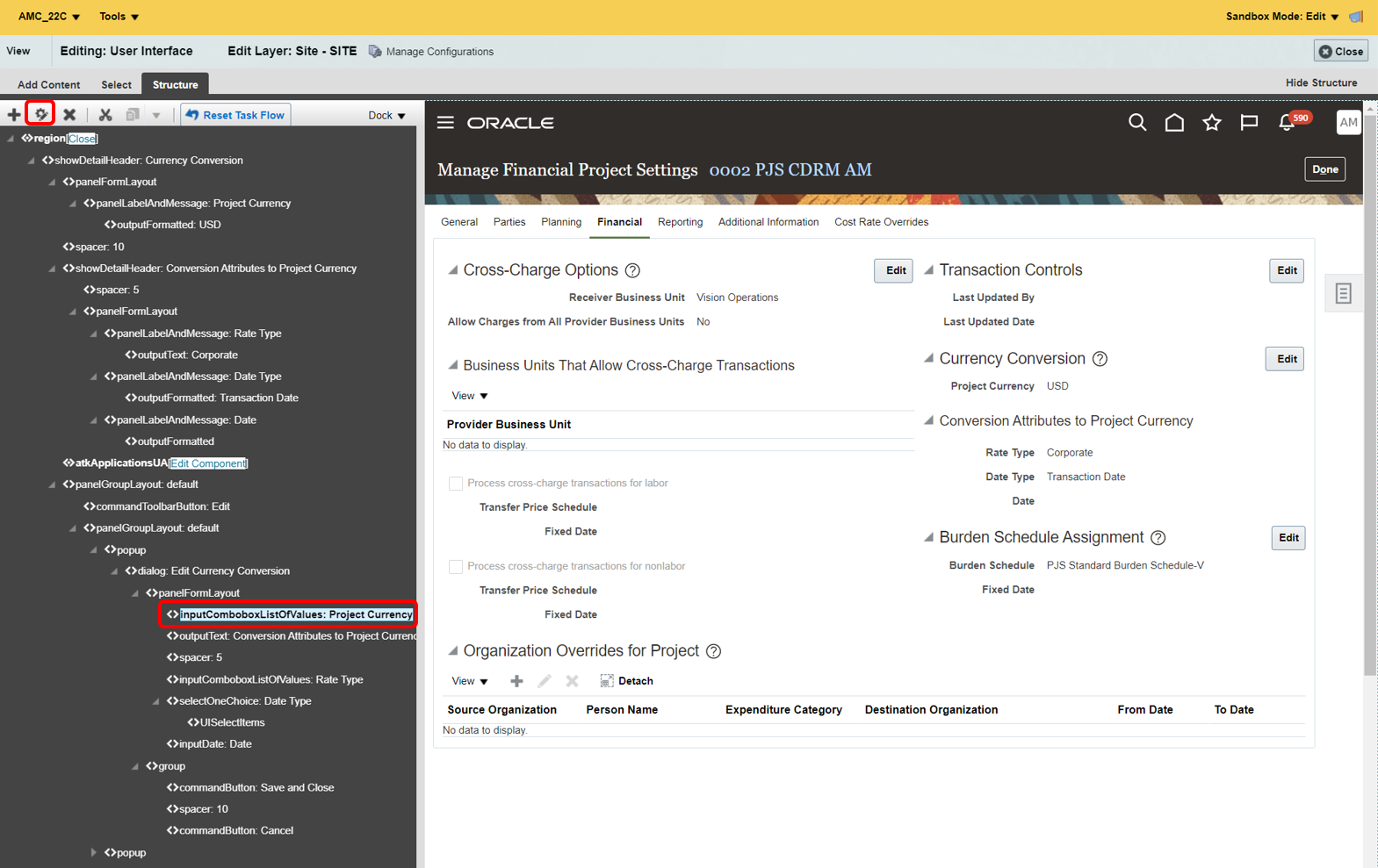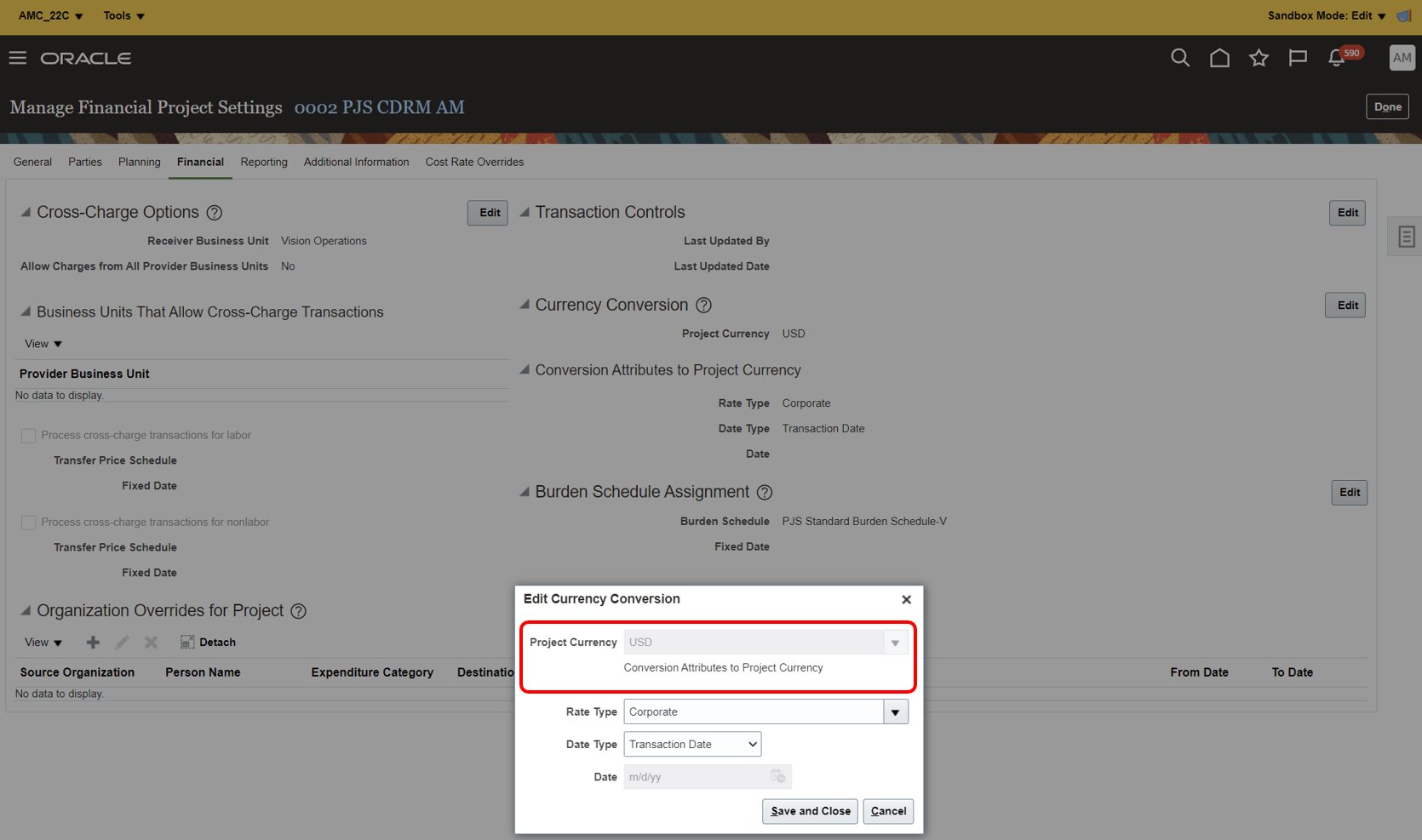 - Extend the Manage Project Financial Settings Page with Parameters