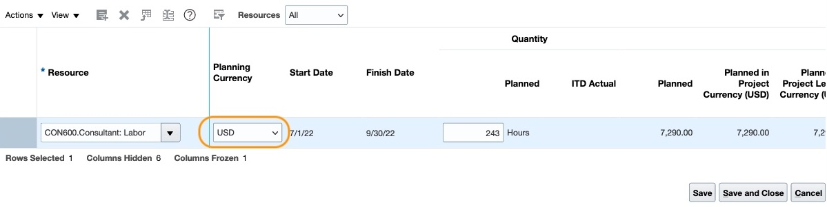 - Planning Currency Modifications for Planned Resources in the Financial Project Plan