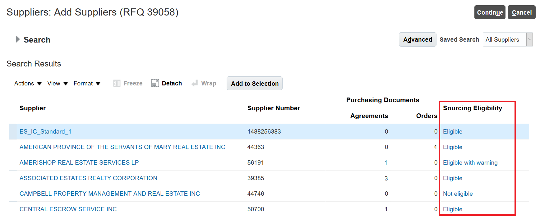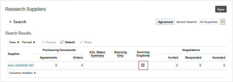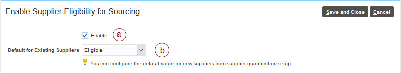 If you are already using Sourcing, this default sourcing eligibility status is going to affect all existing suppliers' ability to participate in sourcing negotiations when the corresponding Enforce Sourcing Eligibility for Suppliers in Negotiations feature in Sourcing is enabled.