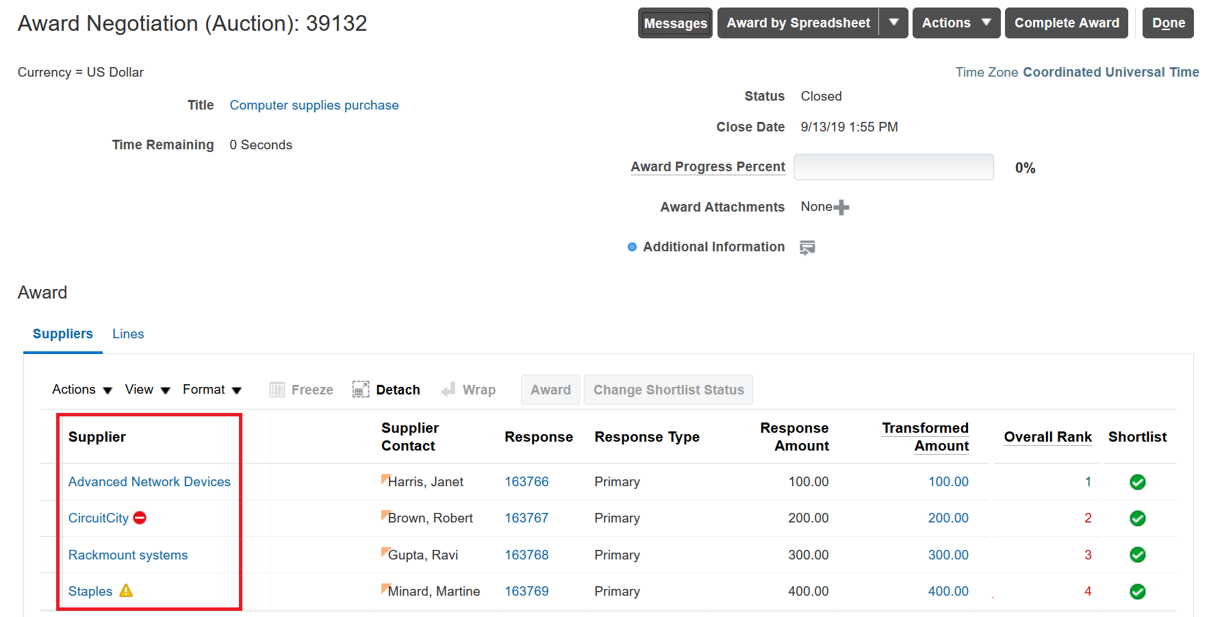 - Supplier Status