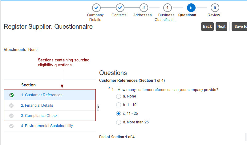 For more information on how the sourcing eligibility status affects the suppliers' ability to participate in sourcing, see the Enforce Sourcing Eligibility for Suppliers in Negotiations readiness document, available in Sourcing - Update 20A.