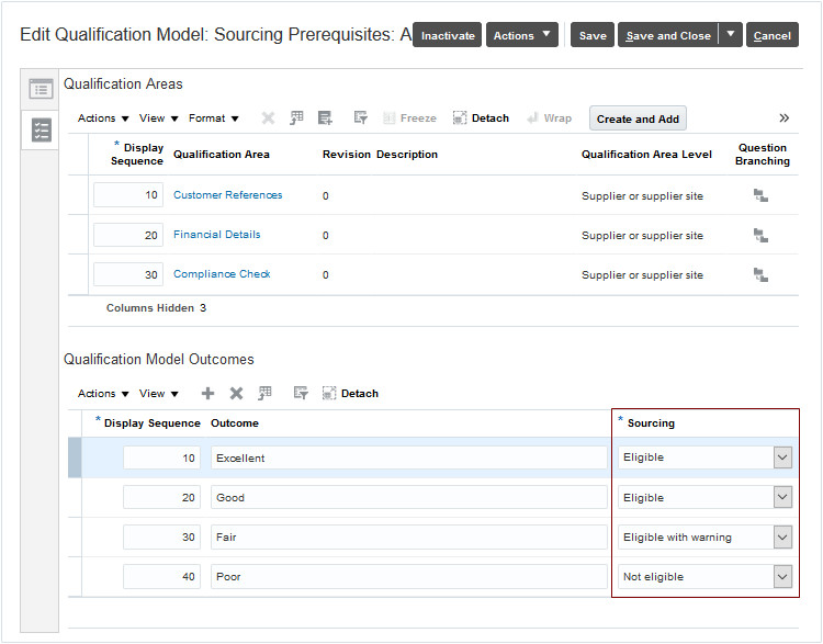 - Configure the sourcing model. (Navigation: Manage Qualification Models > Edit Qualification Model)