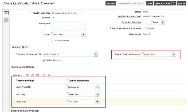 - Automatic qualification and requalification flows also support defaulting the qualification owner for the business unit from the qualification area setup.