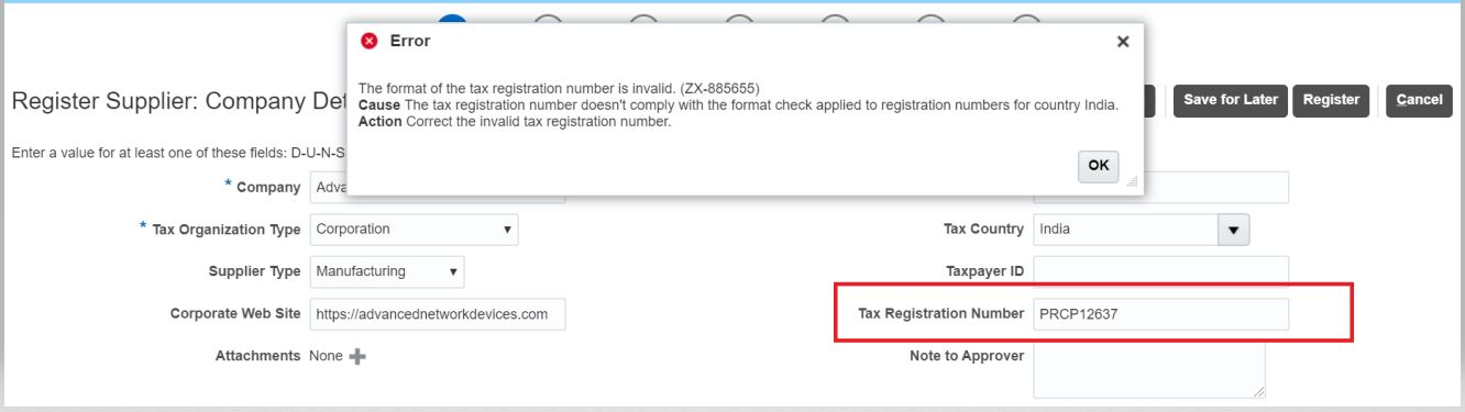 Validate Tax Registration Number Format in Supplier Registration |