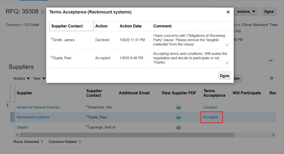 Category Managers Can View the Suppliers Who Accepted or Declined Terms