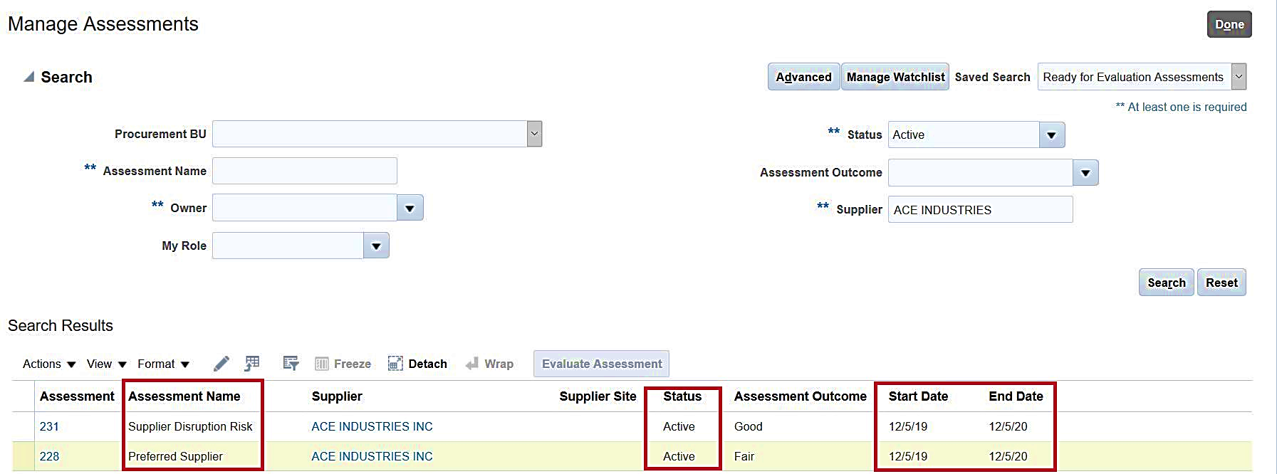 Assess suppliers for multiple qualification models simultaneously. You can now create qualification models to conduct targeted assessments on a supplier concurrently. For example, you can create an overall preferred supplier assessment and a more specific supply disruption risk assessment and have both active for the same supplier. Assessing suppliers and tracking different outcomes simultaneously increases your ability to monitor and analyze your suppliers effectively when you have multiple objectives.