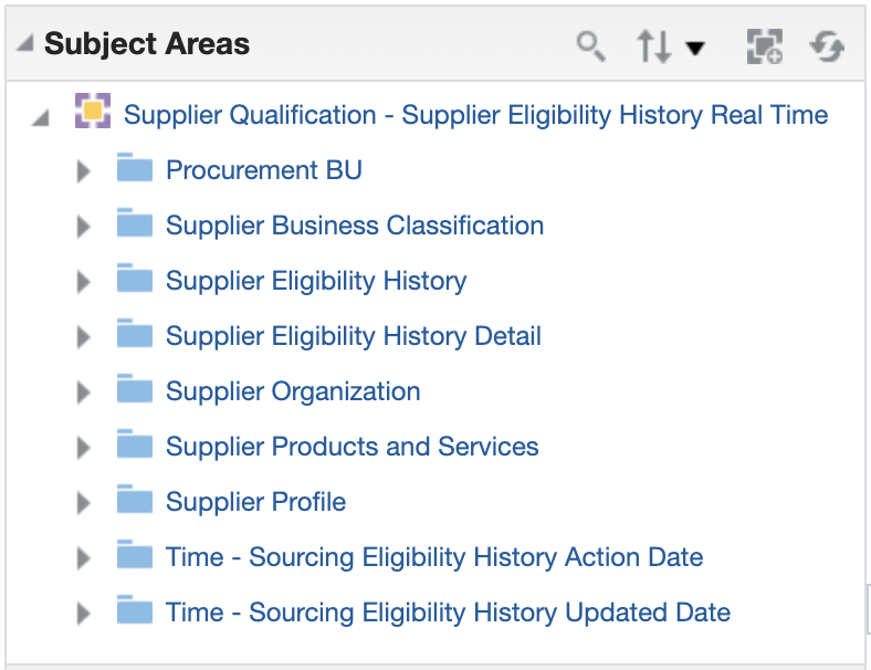 Folder Structure of Supplier Qualification – Supplier Eligibility History Real Time Subject Area