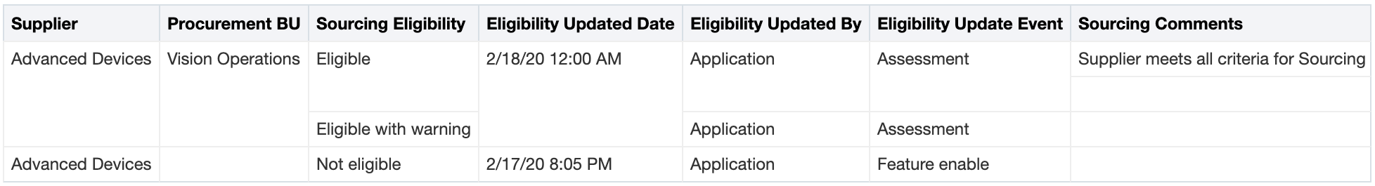 - Supplier Qualification - Supplier Eligibility History Real Time