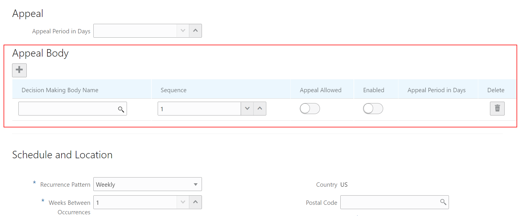 - See Implementing Licensing and Permitting, "Setting Up Hearing and Decision Making Bodies" on the Oracle Help Center.
