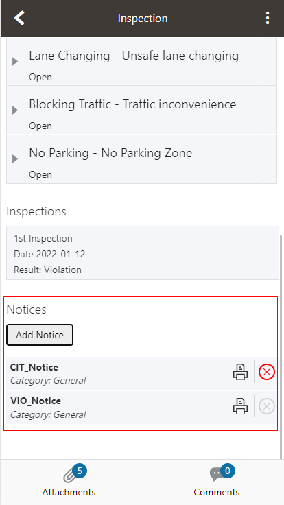 Code officers can now add, print, and cancel ad hoc notices for inspections in Completed status.
