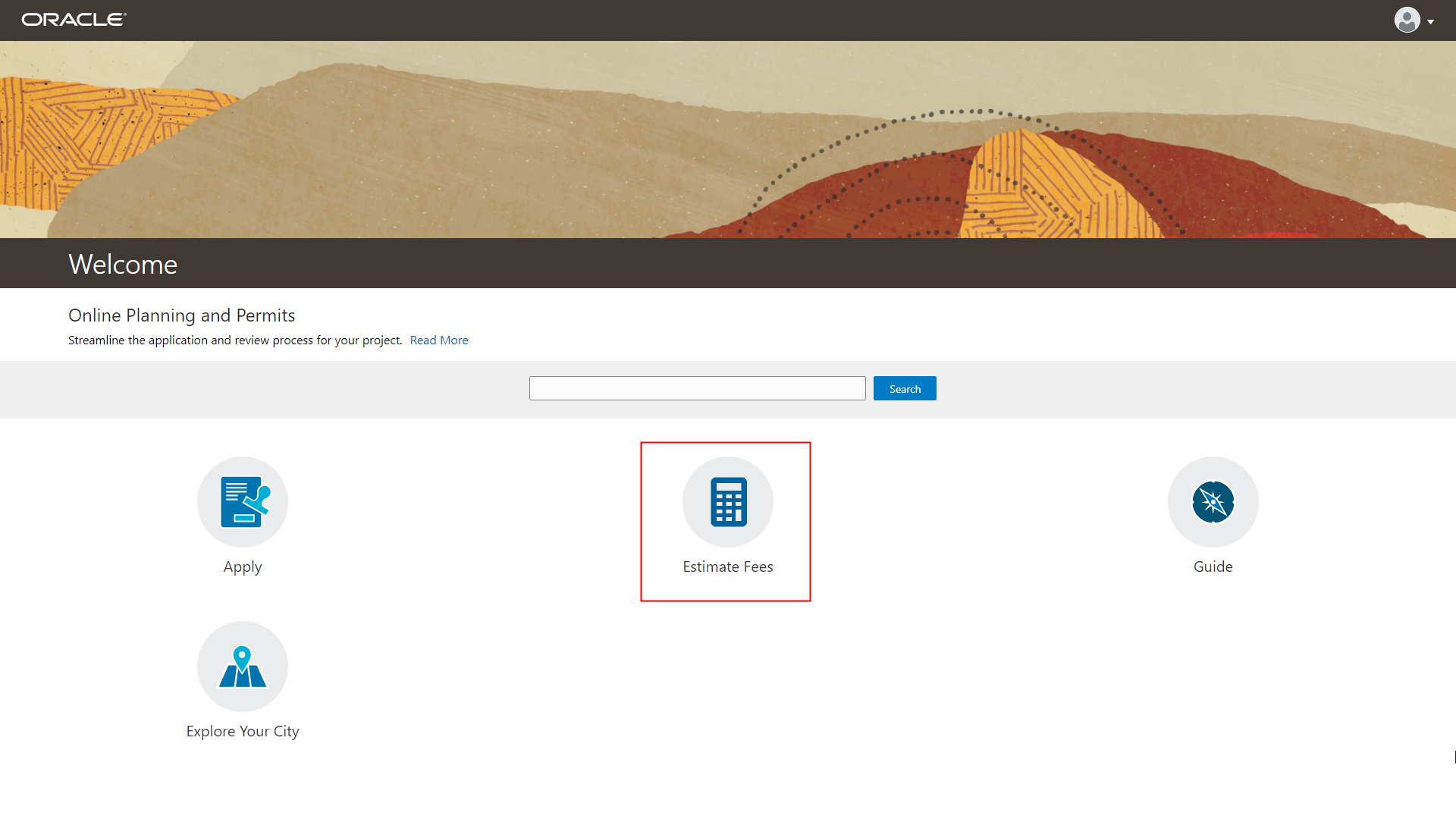 Anonymous users now have an Estimate Fees tile on their landing page. Using this tile, they can access an Estimate Fees page and choose an application to estimate the associated fees. The fee is calculated based on a simplified intake form with only the relevant questions needed for a fee estimation. This gives the non-registered users a quicker way of estimating fees without having to register themselves and complete an entire application.