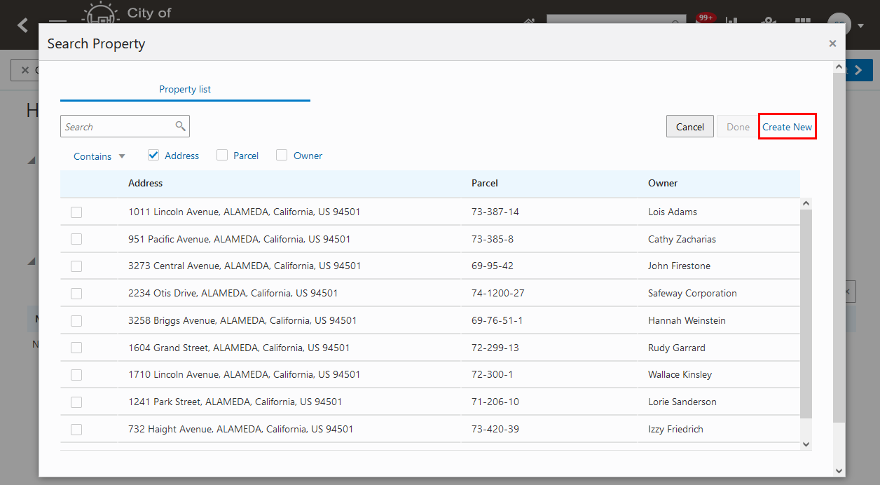 Now Agencies can disable the "Create New" link on the Search Property page to prevent registered public users from creating new addresses during application intake.