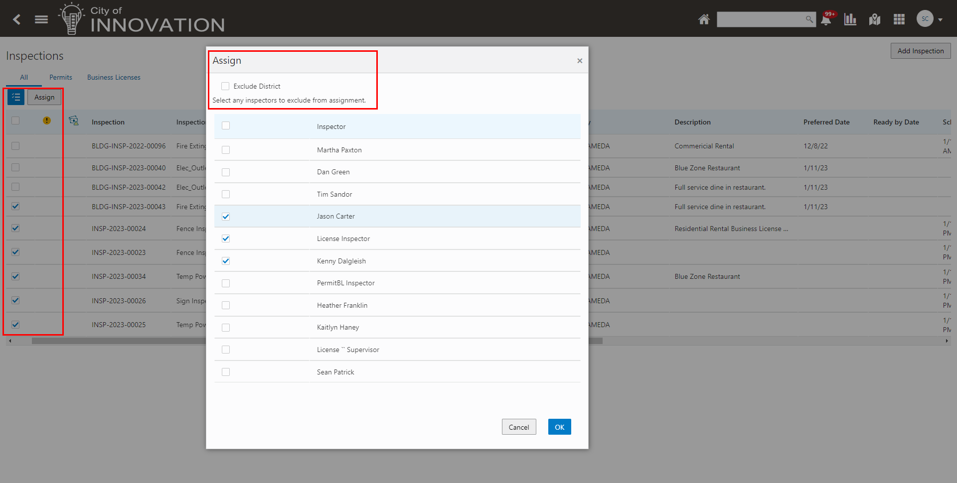 - Business License Transaction, Inspection, and All Attachment Tabs