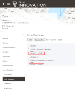 | 21 APR 2023 | Code Enforcement | Code Violation Comply By Dates | Updated document. Revised feature information. |