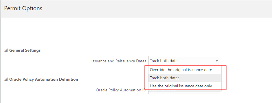 This functionality supports three options for tracking the Permit issuance and reissuance: