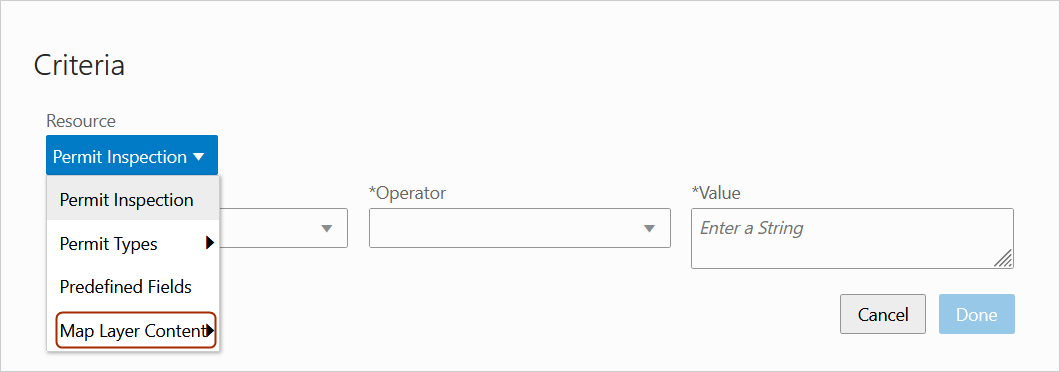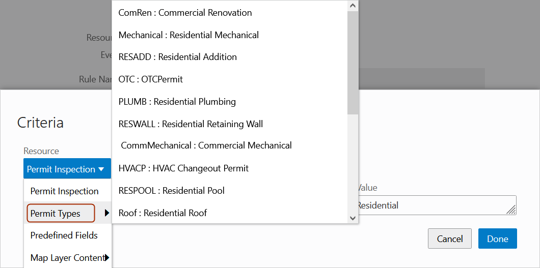 - See Implementing Permitting and Licensing, "Implementing the Business Rules Framework," Setting Up Business Rule Criteria on the Oracle Help Center.
