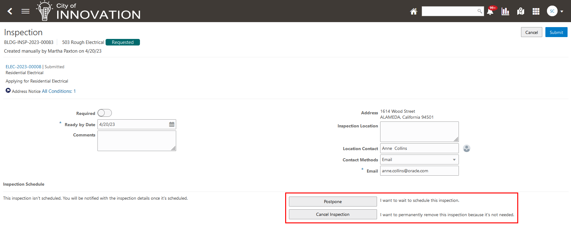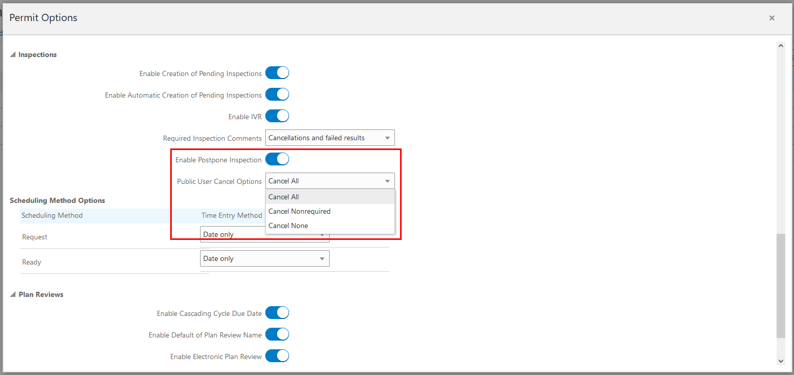- See Using Community Development Permits, "Working with Permit Inspections," Managing Inspections for an Agency on the Oracle Help Center.