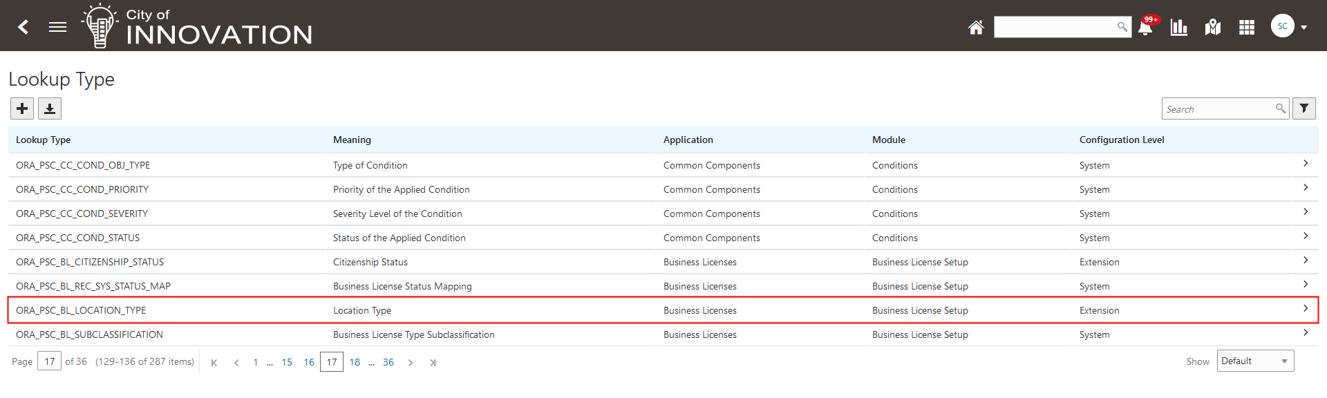 This example illustrates the setup page where the agency can add the location types to exclude from the business license search.