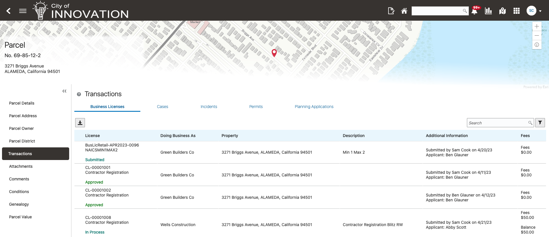 You can easily navigate from reference parcels and addresses to a linked business license on the transactions tab.