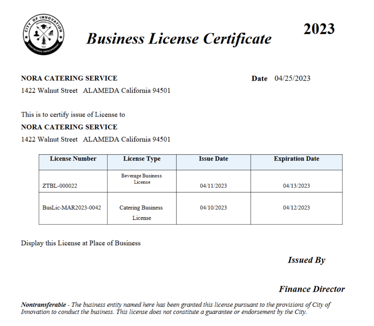 Agencies can allow businesses to print and/or display one certificate for all the licenses awarded to a specific location or the business.