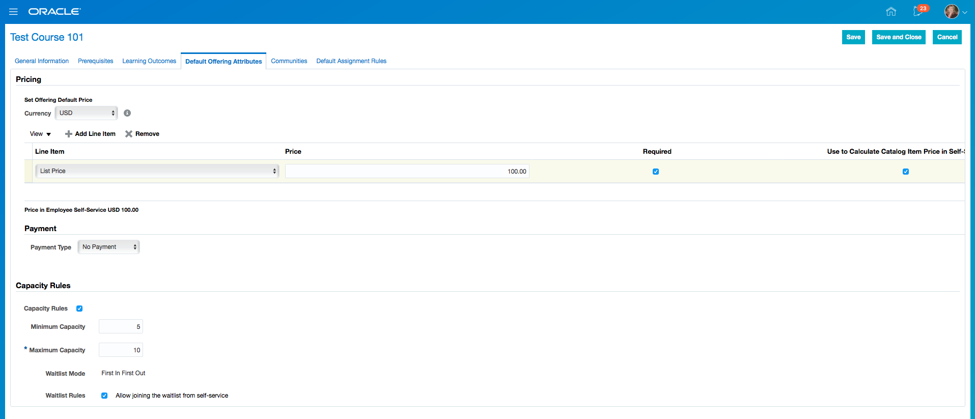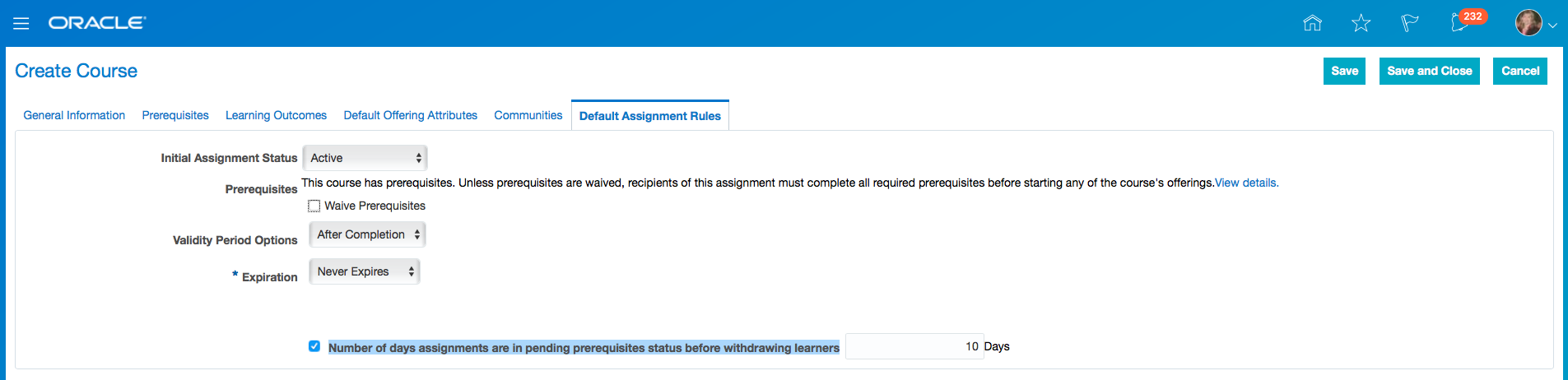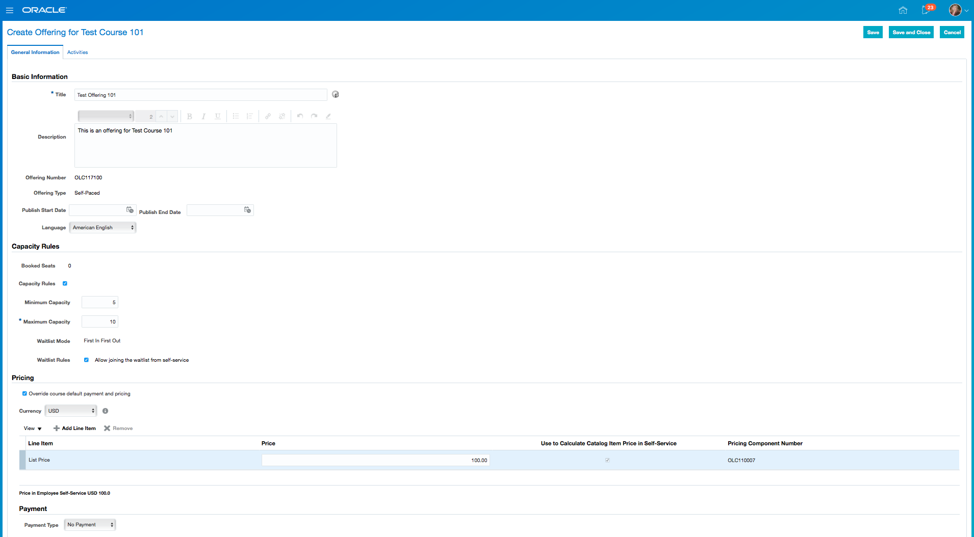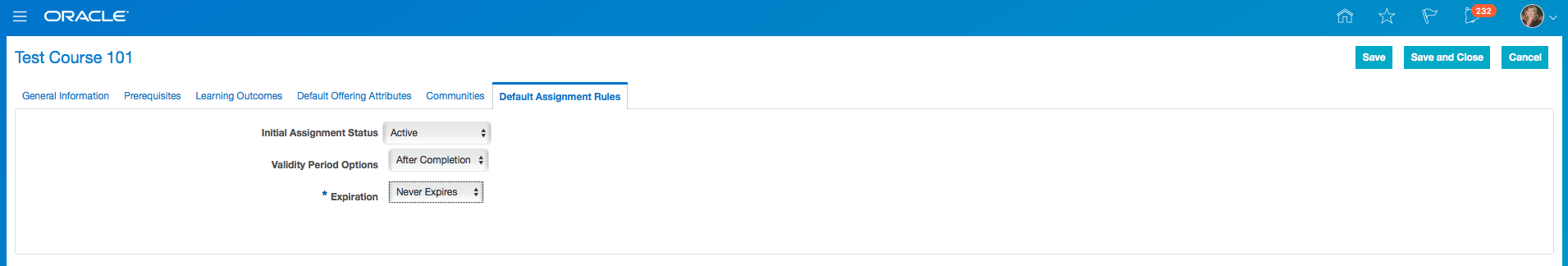 - Click Save and Close.