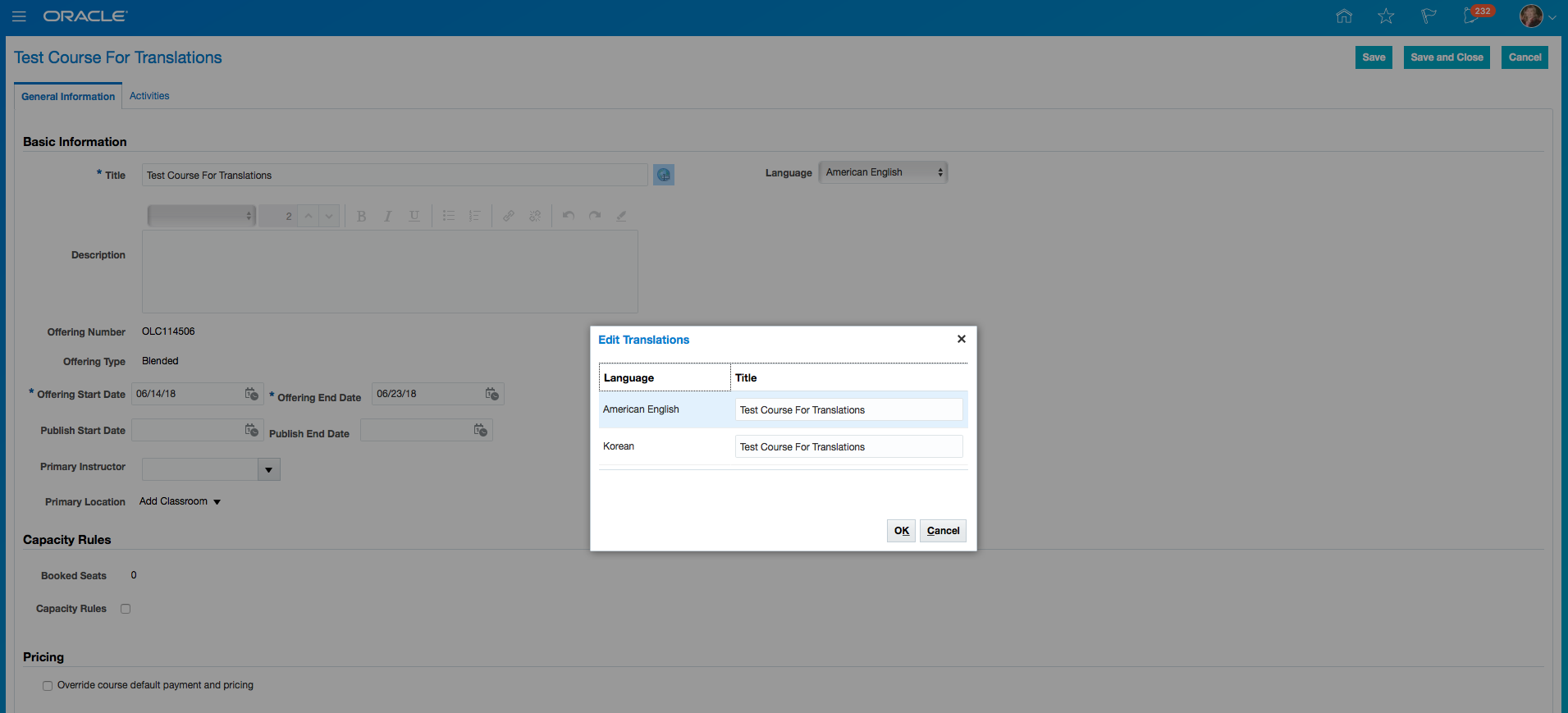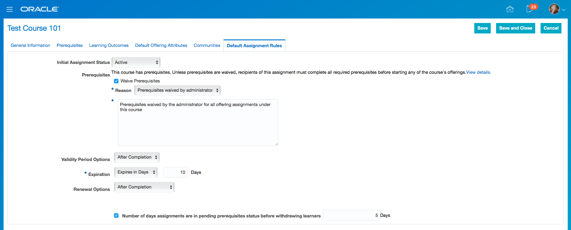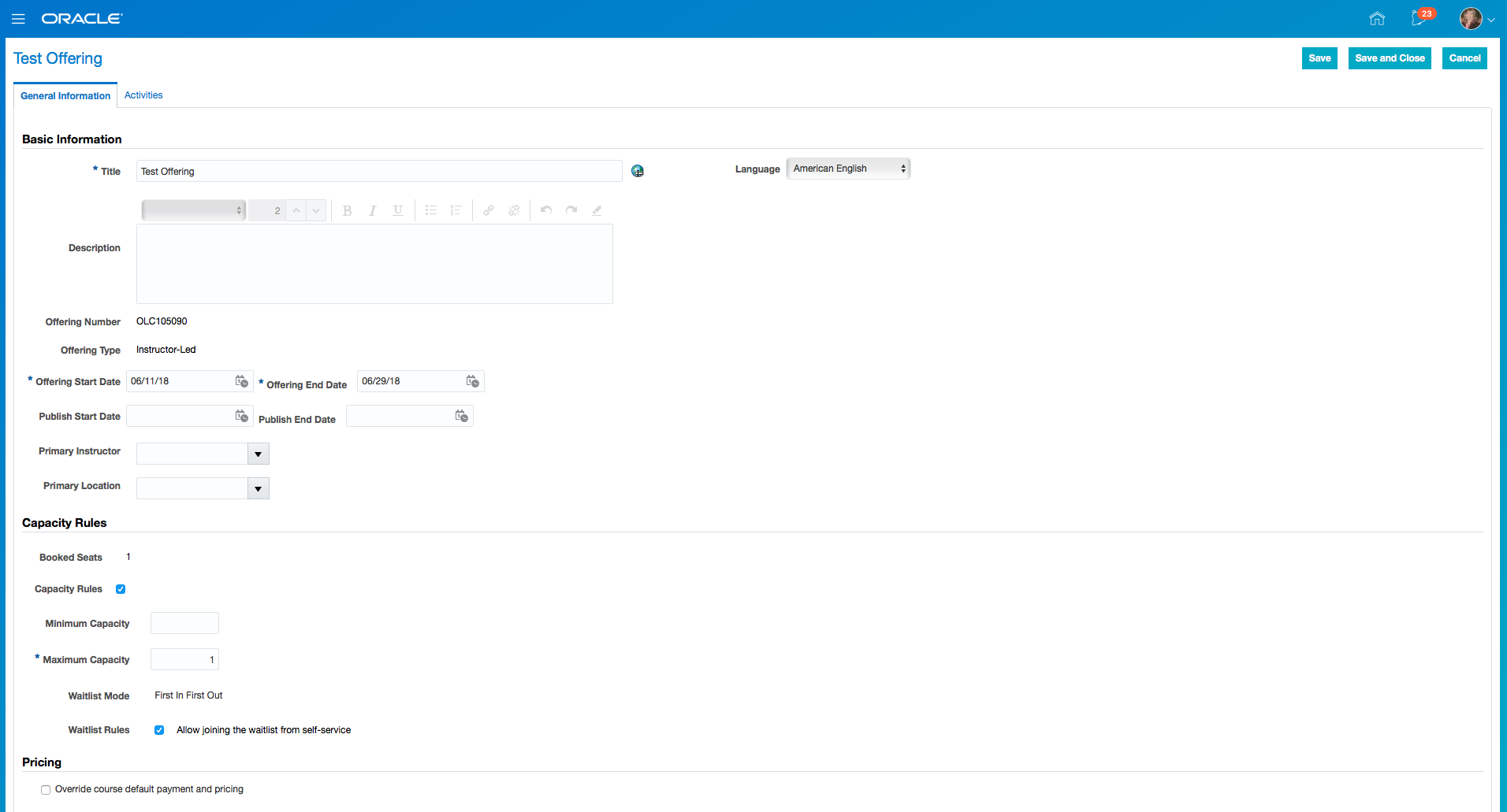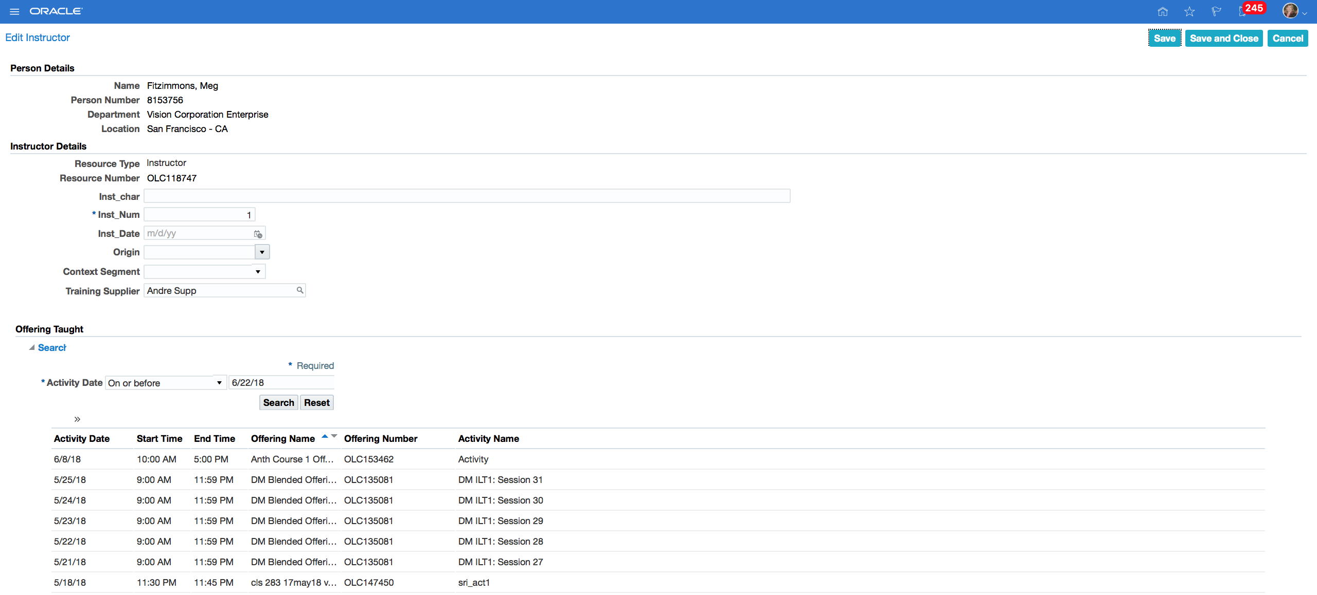 - Click Save and Close.