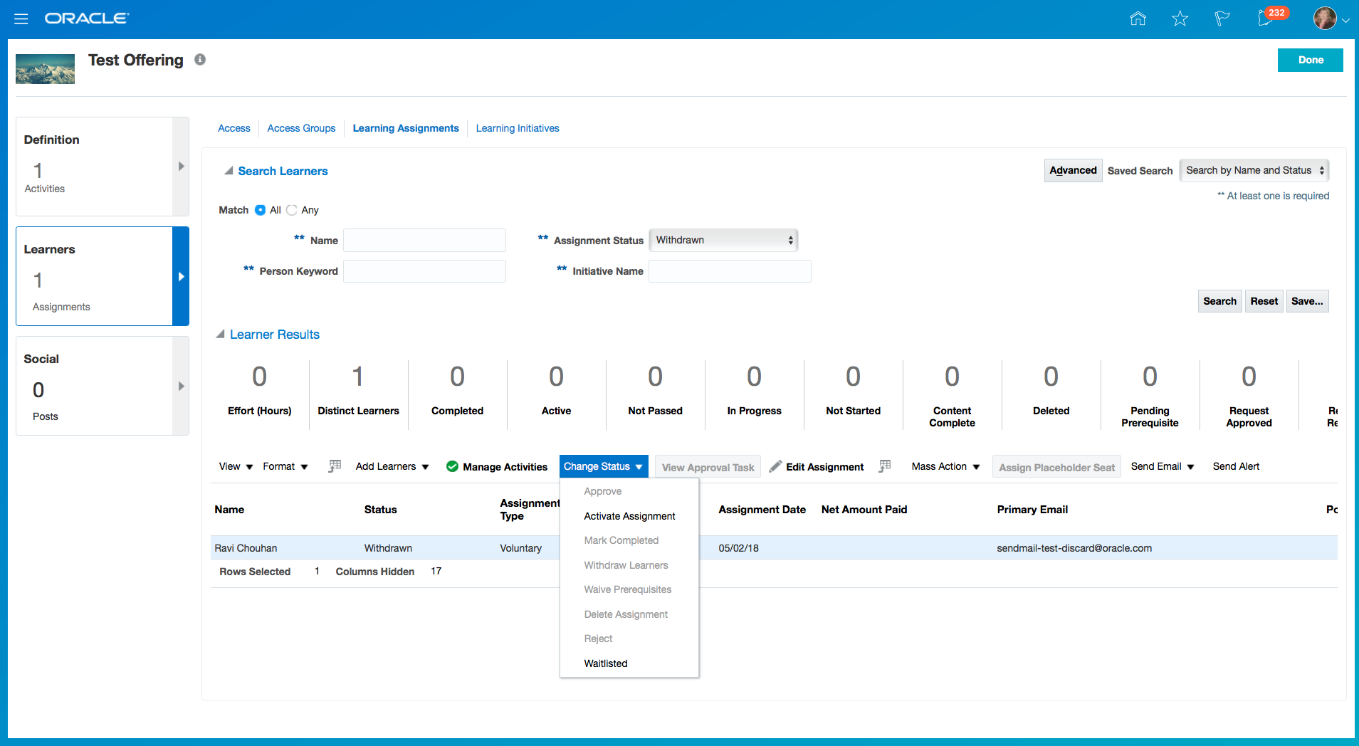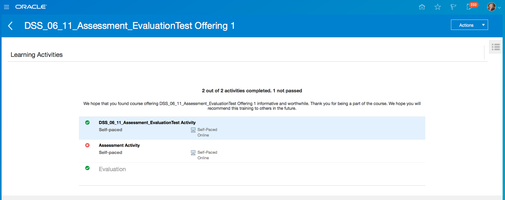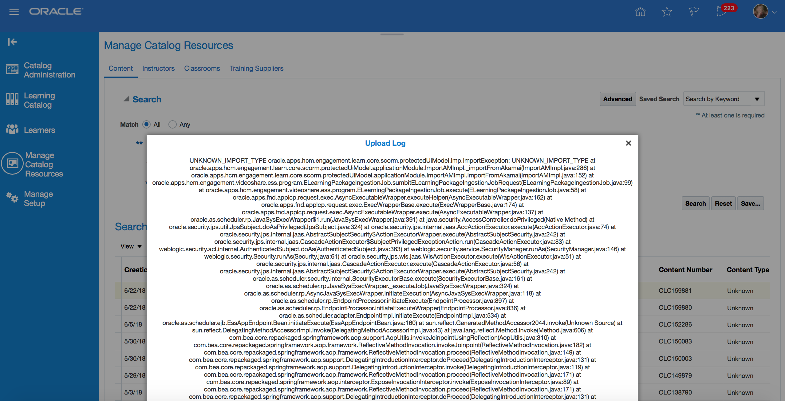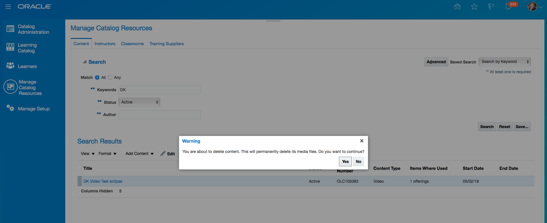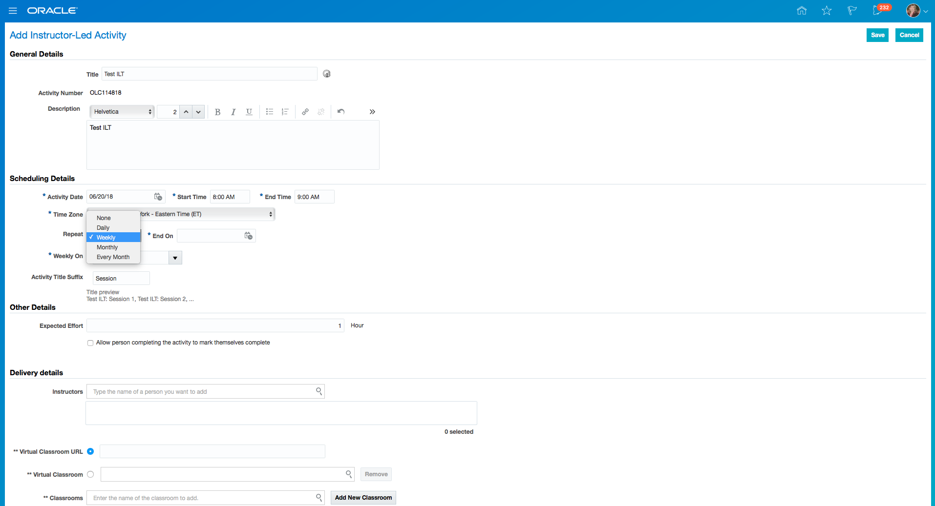Modified Class specific information eliminates the contents directly under the classes. Instead, Classes are enhanced to have Activities under them. Each activity that needs to be completed by a learner is tracked through Assignment Tasks.