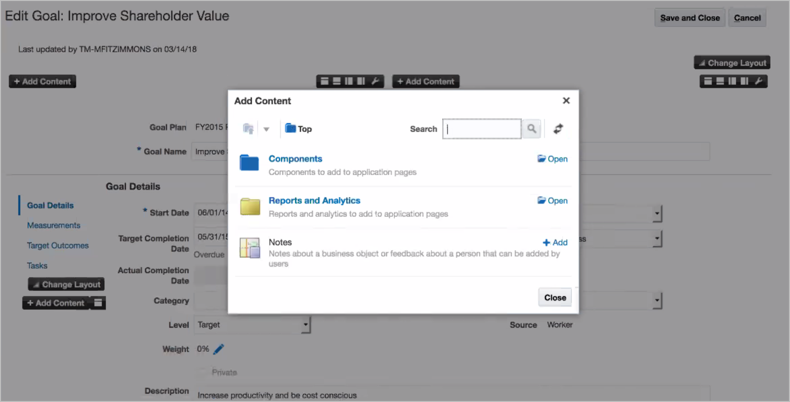 Using Oracle Fusion Goal Management, you can transform business objectives into goals across various organization levels, providing a clear line of sight from managers to employees. Business leaders can communicate high-level initiatives, which managers can translate into goals for their employees.