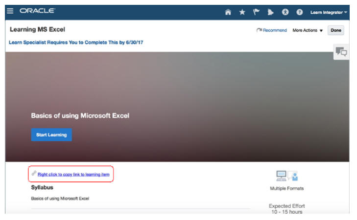 Enhanced Subject Area for Learning - Expected Training Hours for a Course