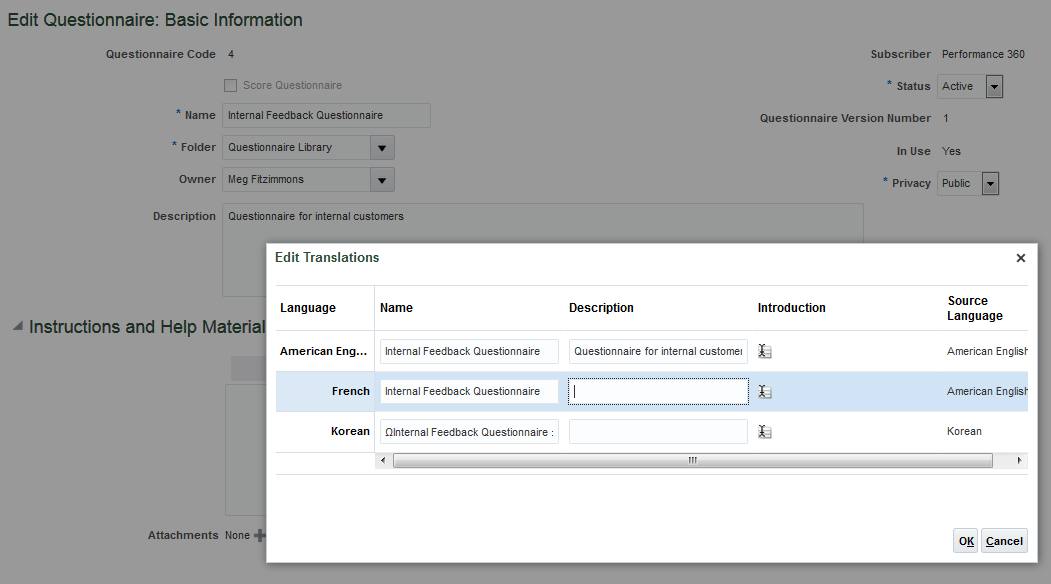 Enter Translations for the Editable Fields in Questionnaires and Questions