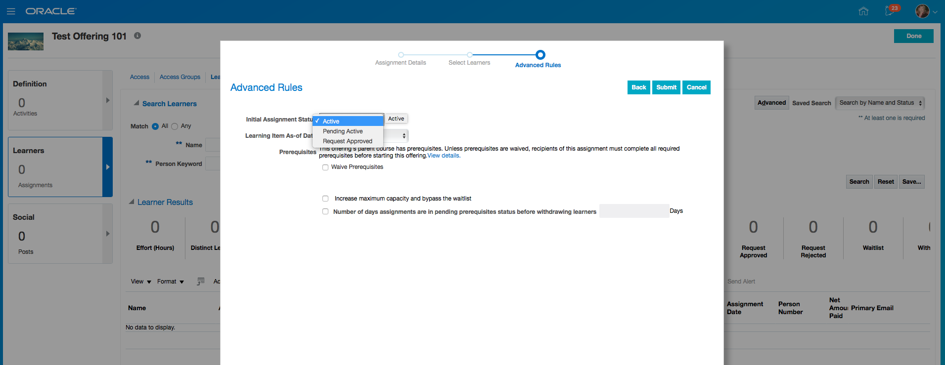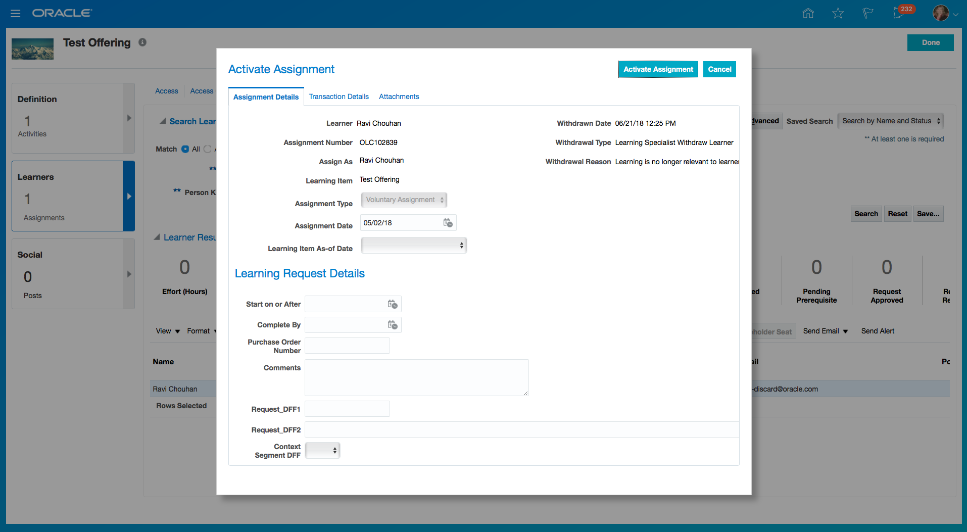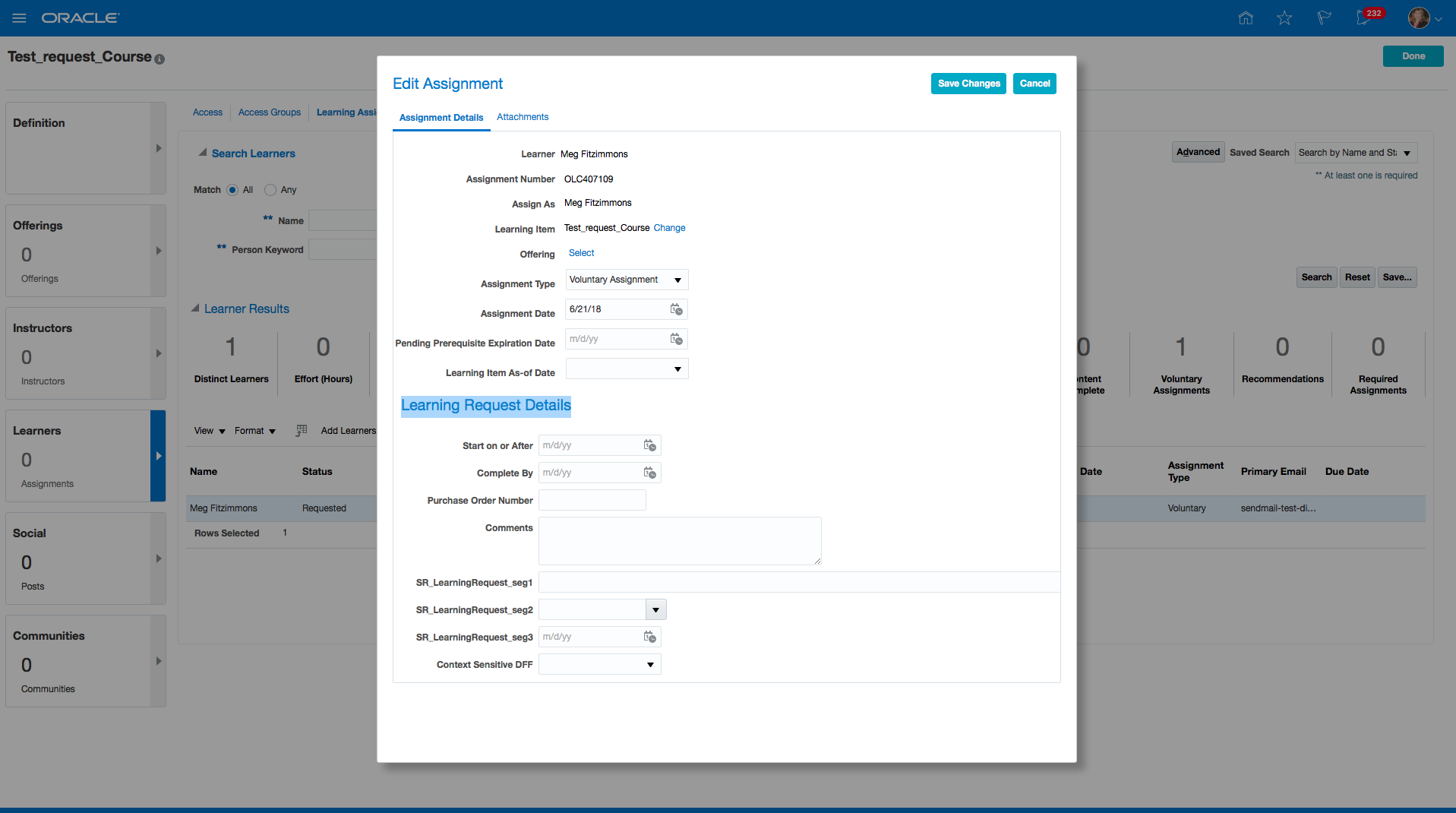 New Dimensions in Learning Subject Area for Learning Requests and Non-Catalog Items