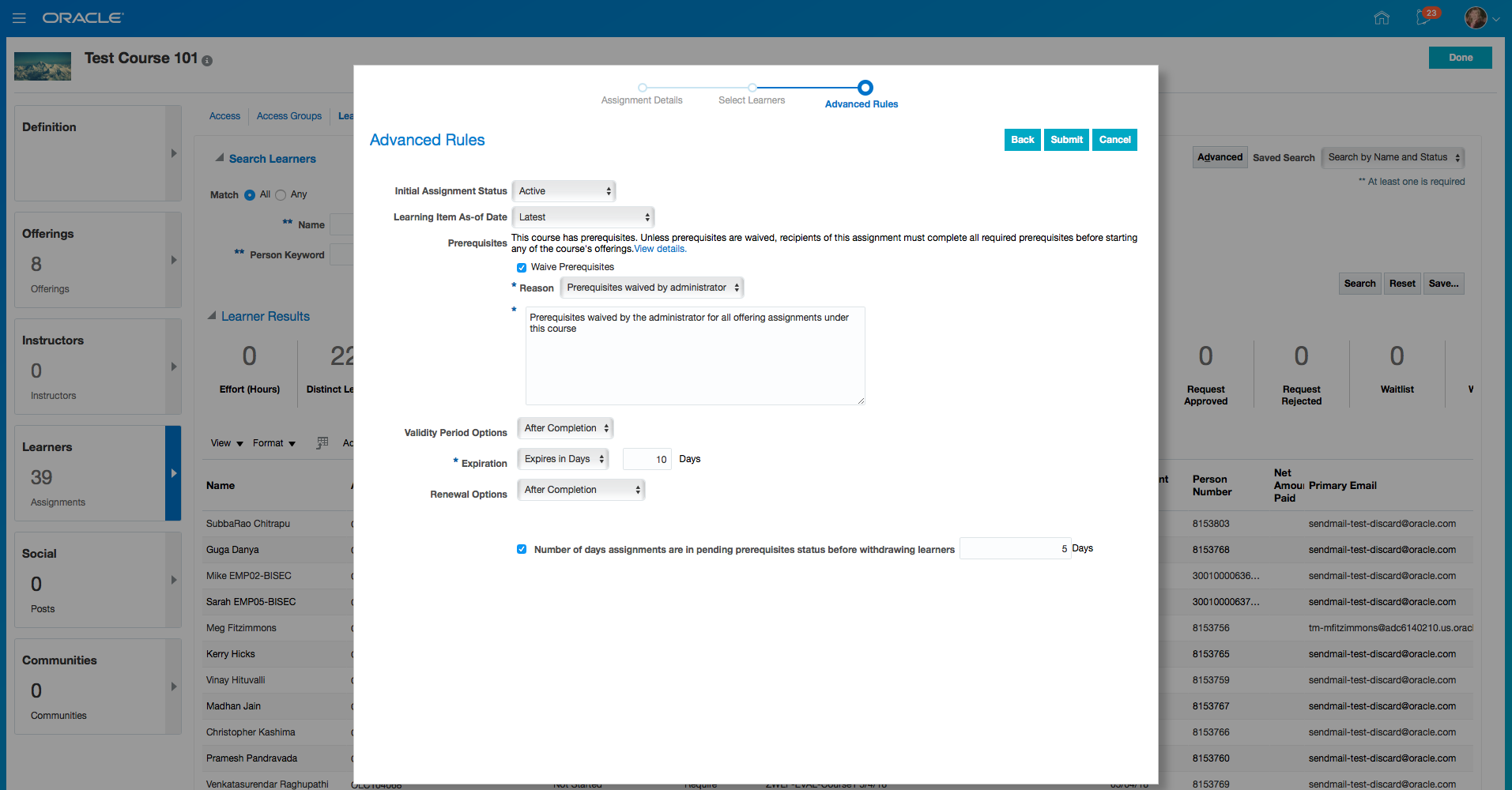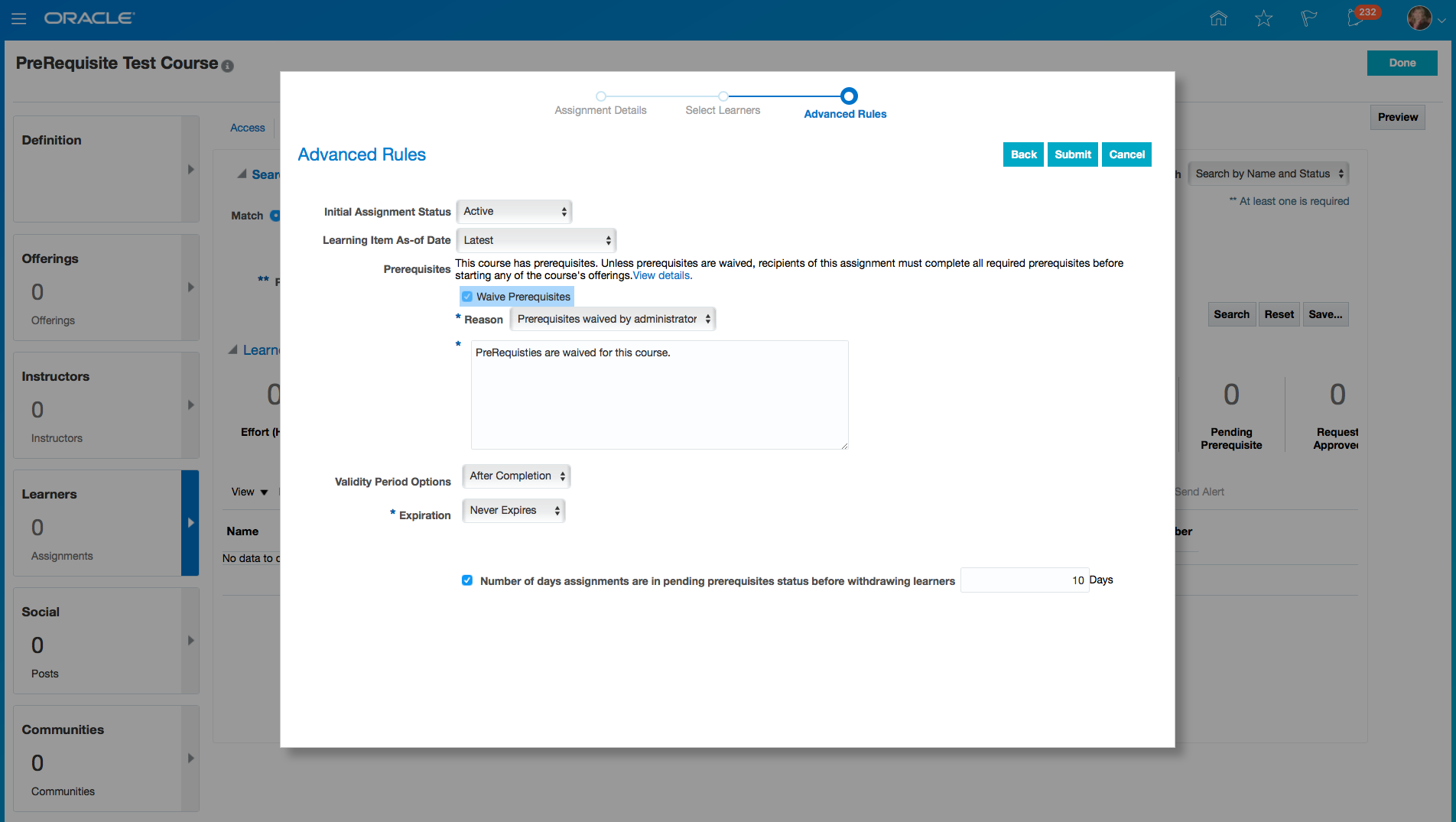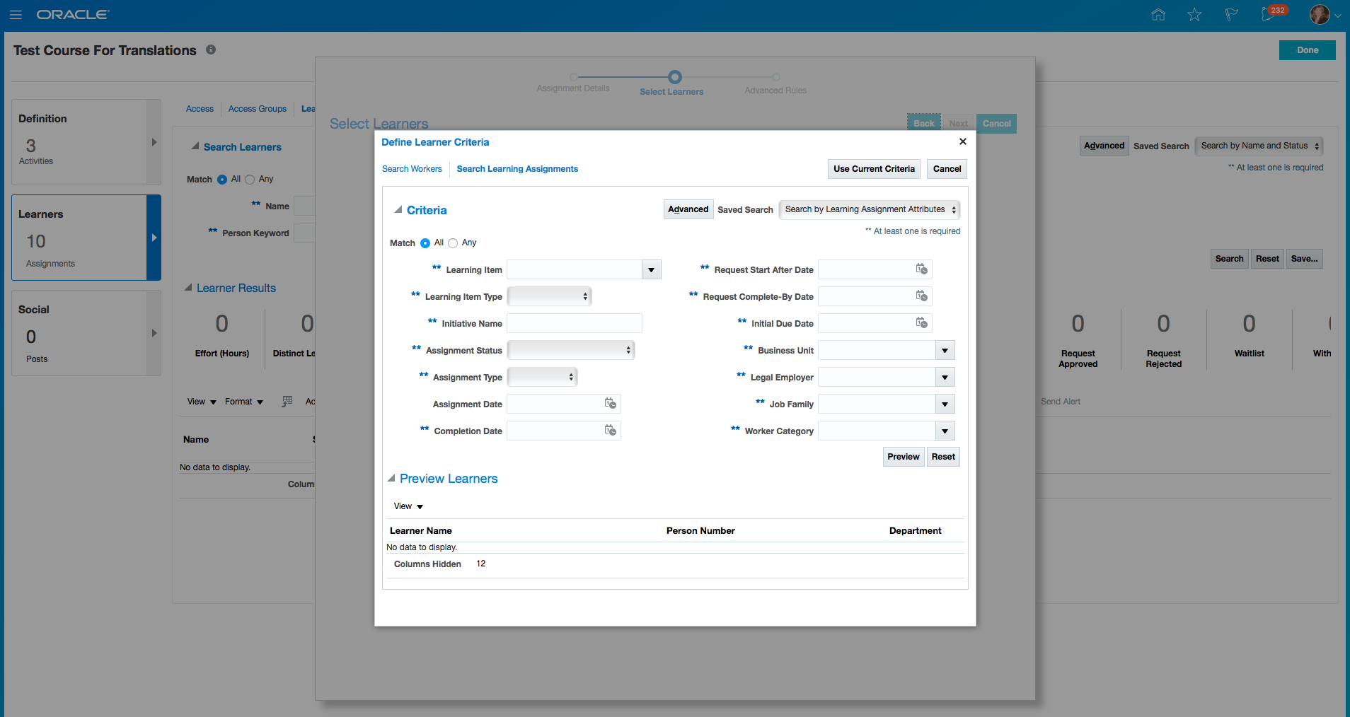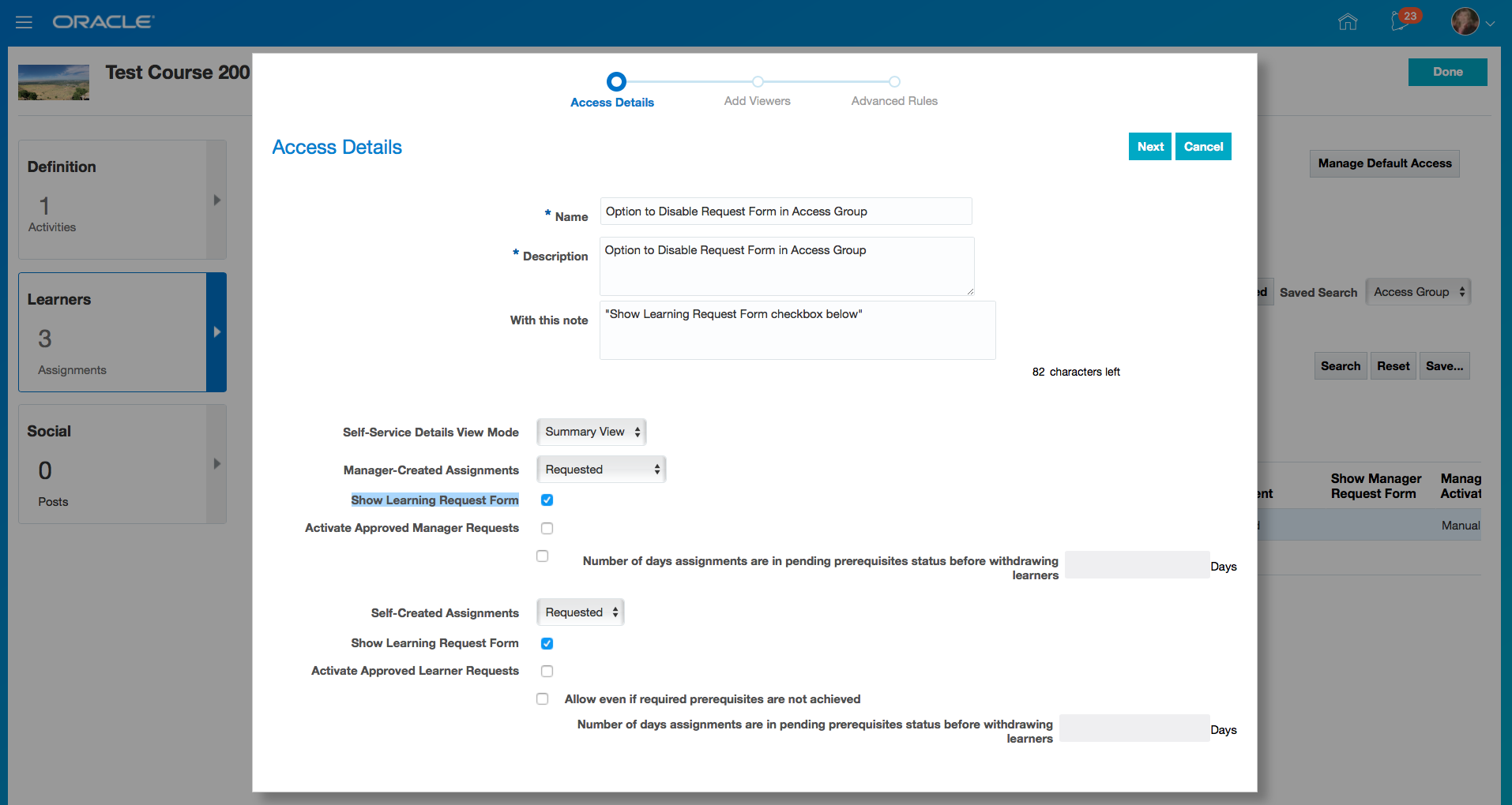 New Dimensions in Learning Subject Area for Learning Requests and Non-Catalog Items