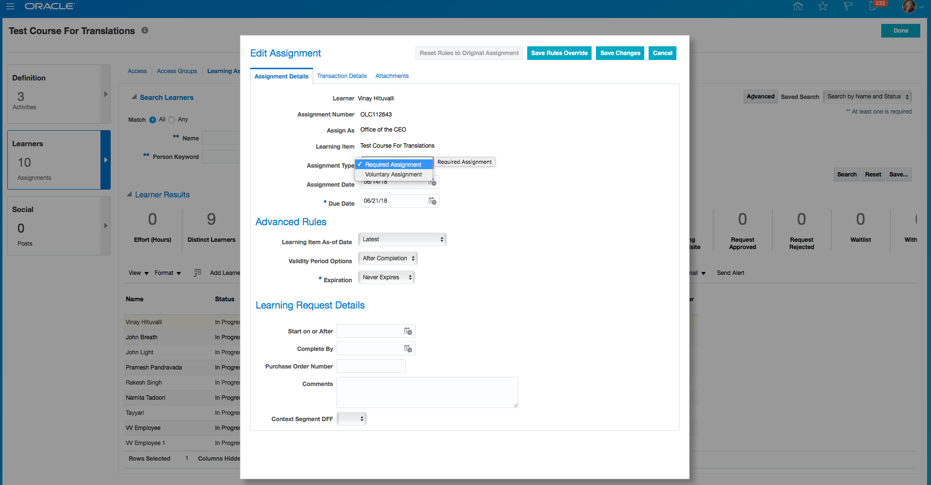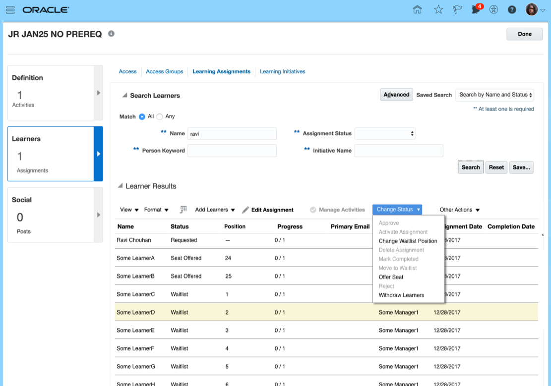 Enhanced reporting on Learning systems now requires the learners request learning rather than enroll themselves. Similarly a manager can request learning for his or her team.