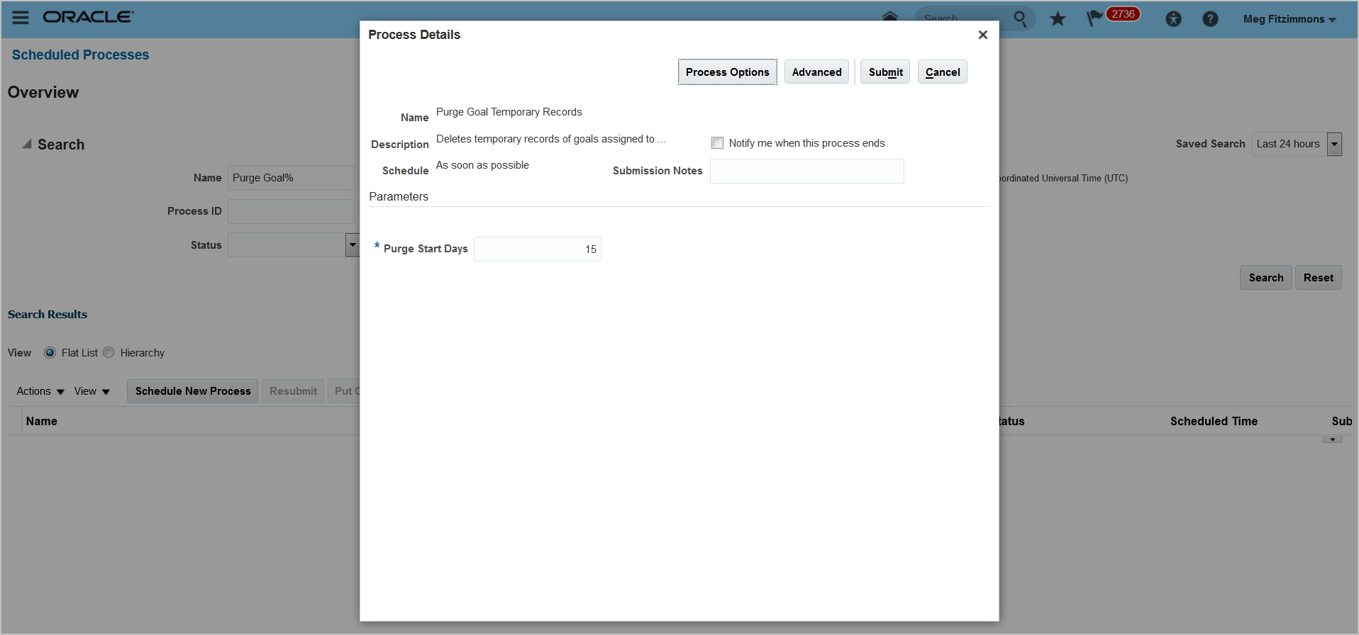Manage Goal Scheduled Process Parameters for Goal Management