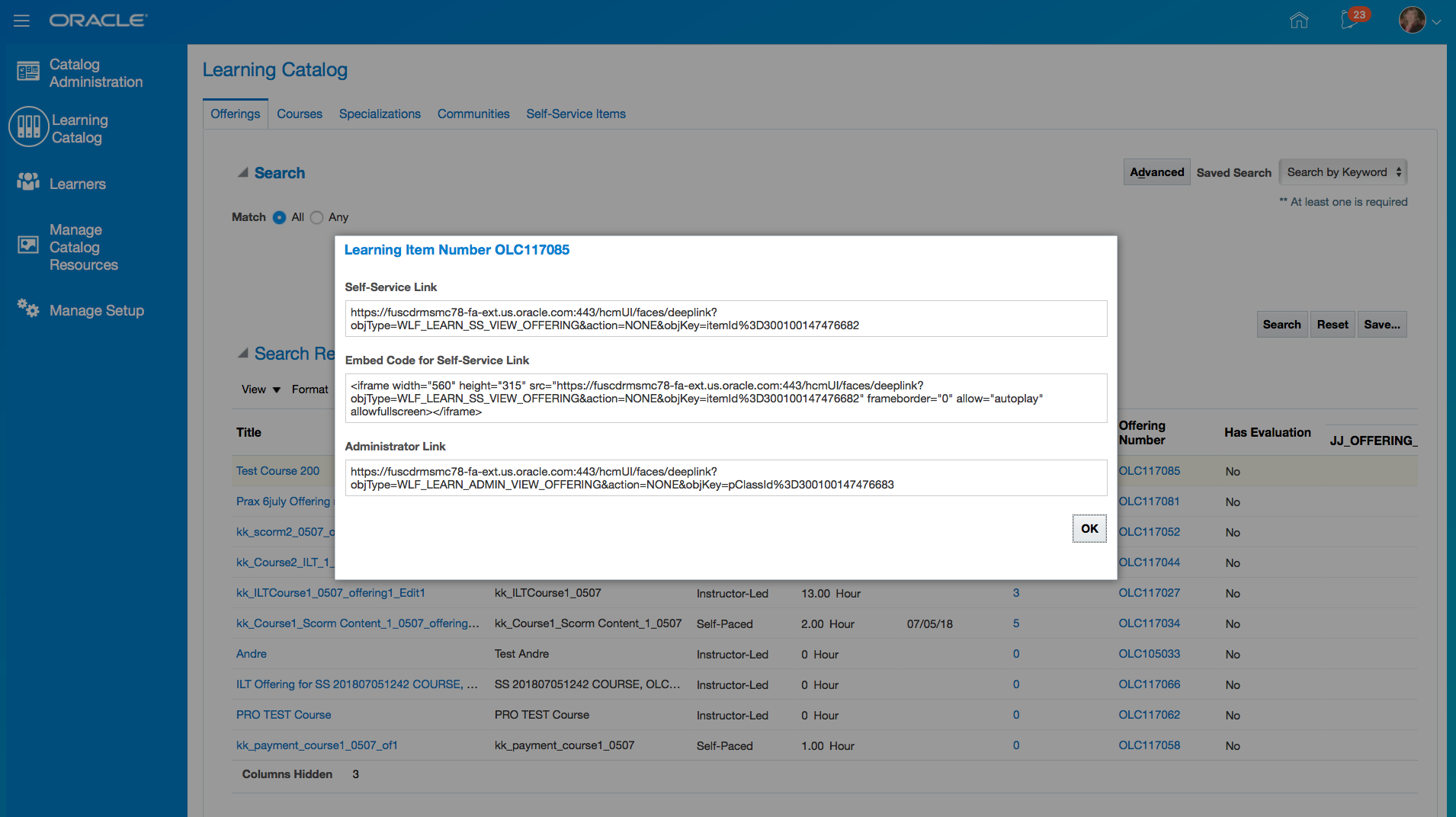 You can also report on learning items that are not in the learning catalog and have been requested by the workers.