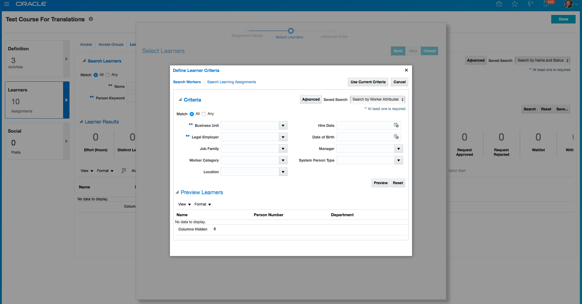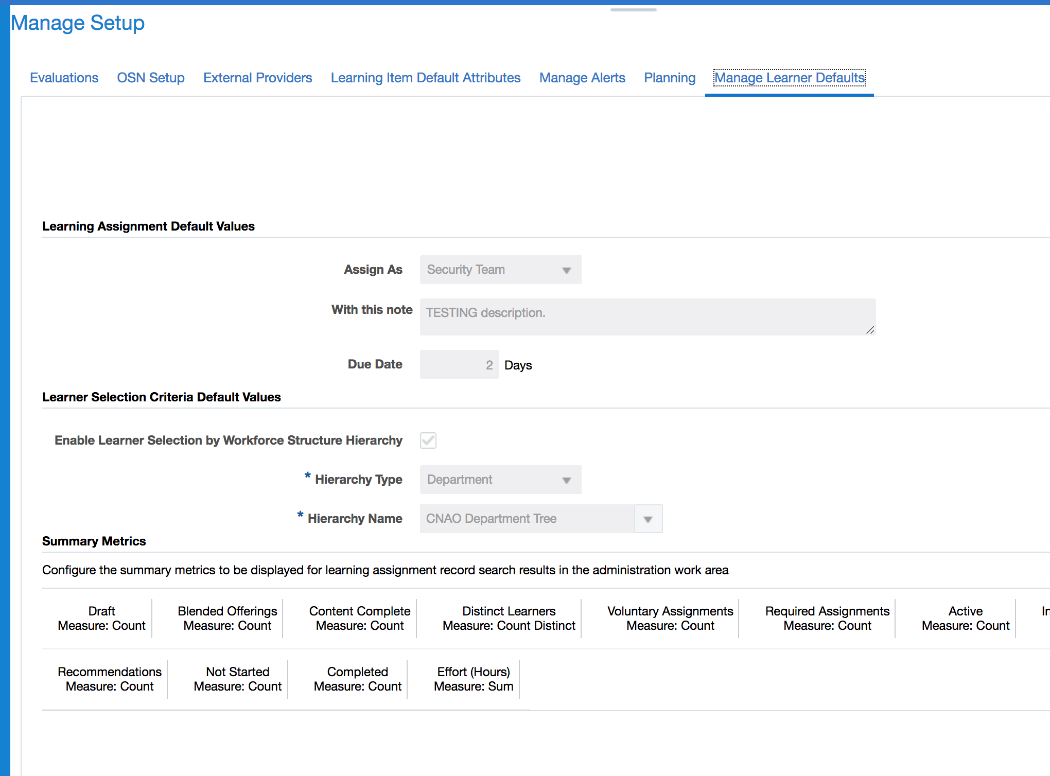 Enhanced Learning Subject Area includes the minimum and maximum training hours specified for a learning course.