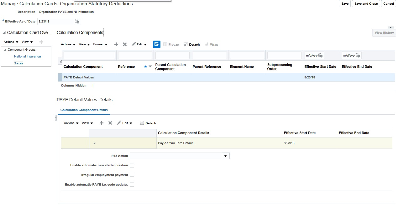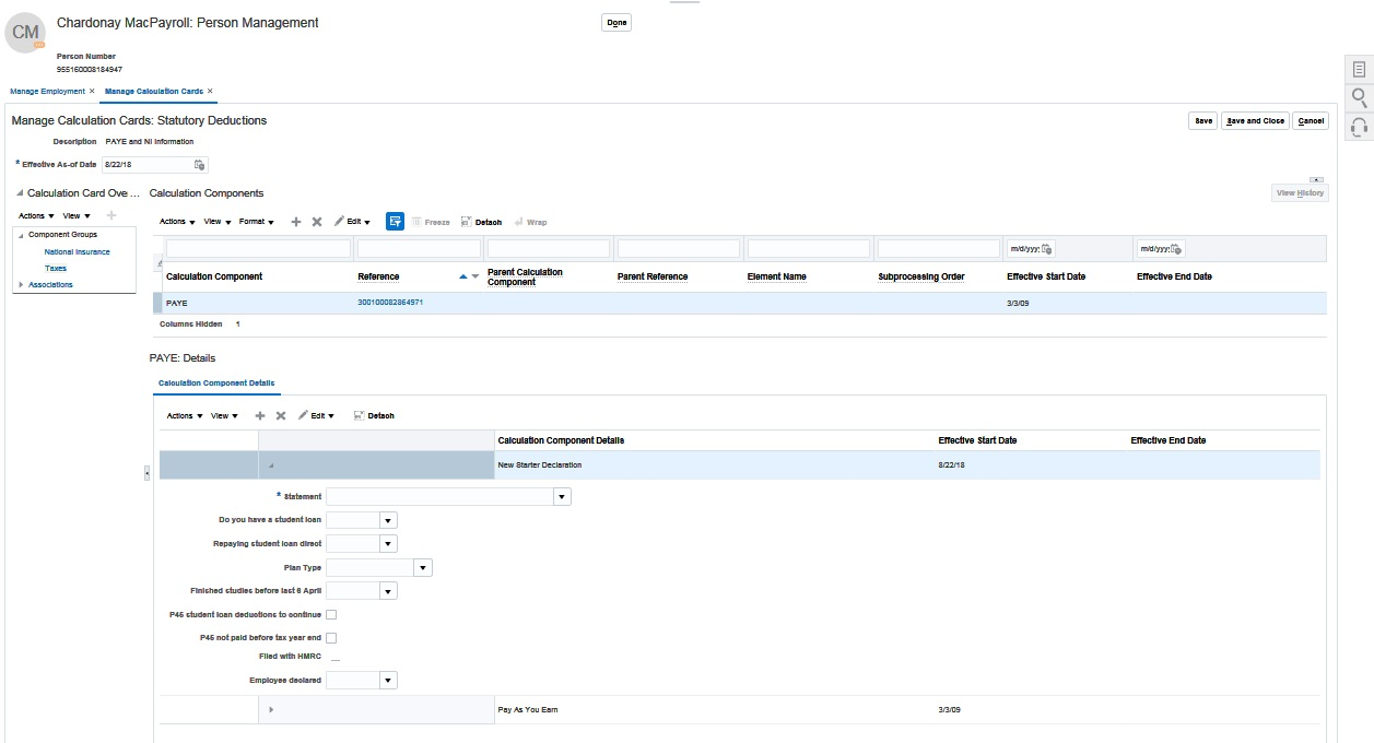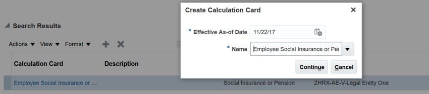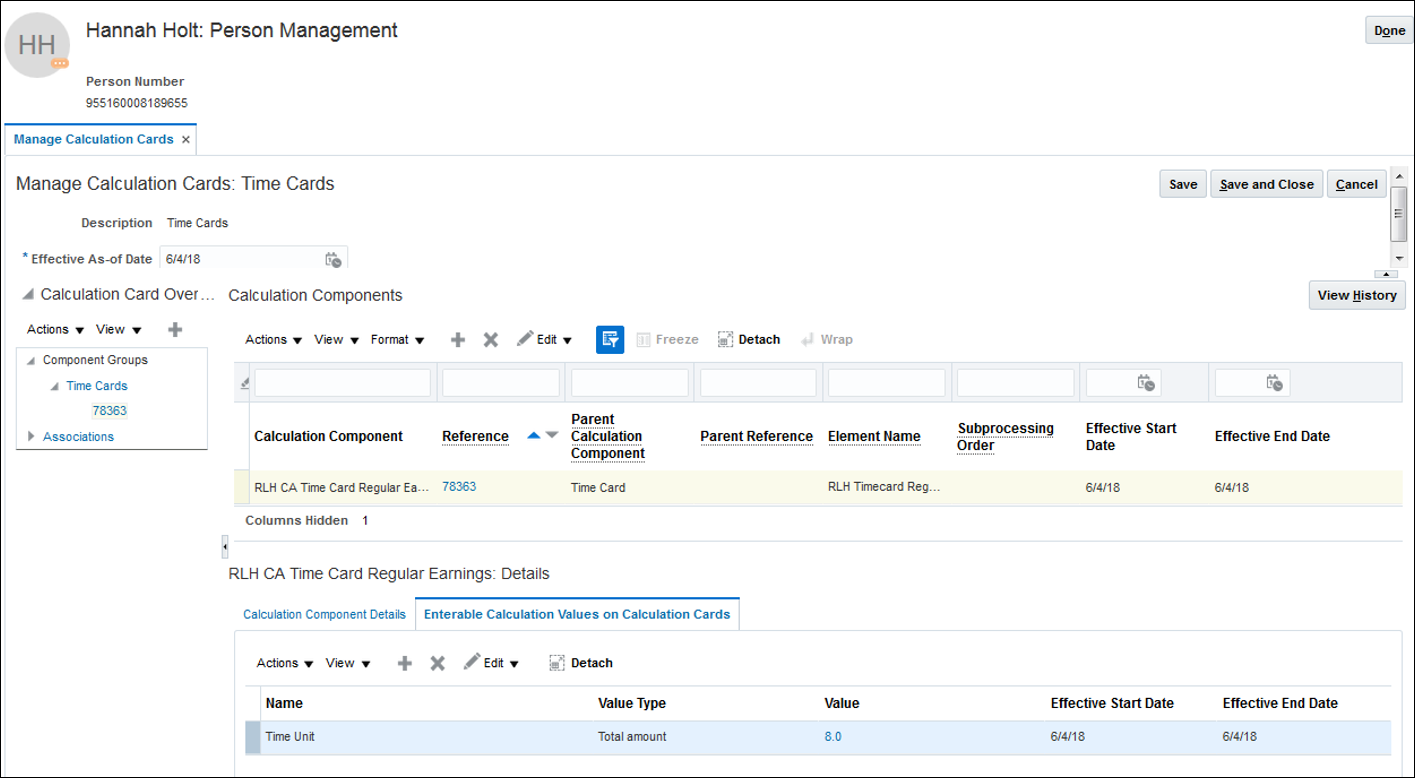 - The Manage Calculation Cards task in Payroll Calculation.