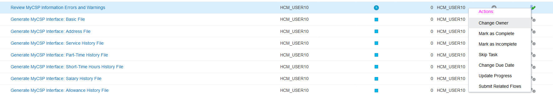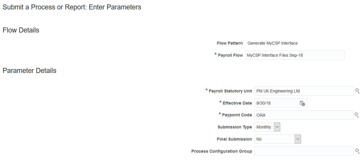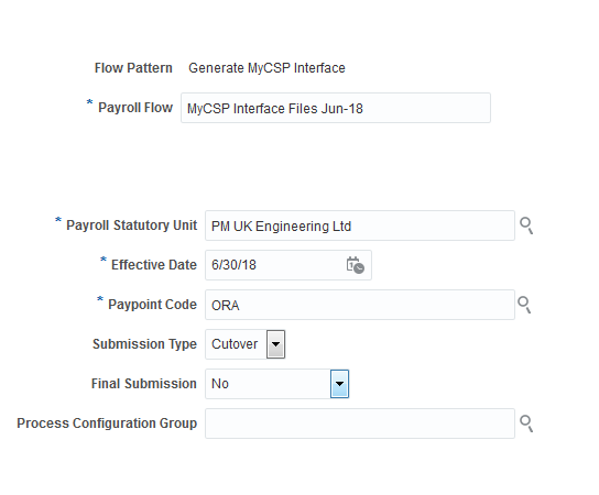 You can use the new process to generate the monthly files for MyCSP pension interface. The predefined process Generate MyCSP Interface generates monthly files including: