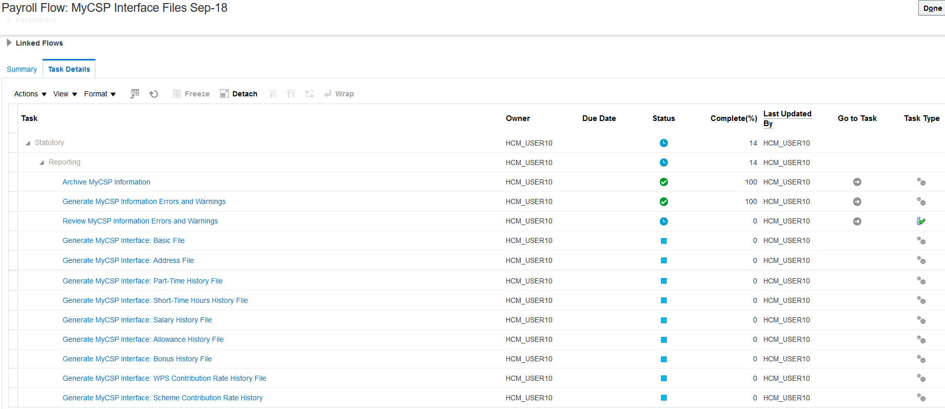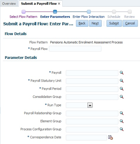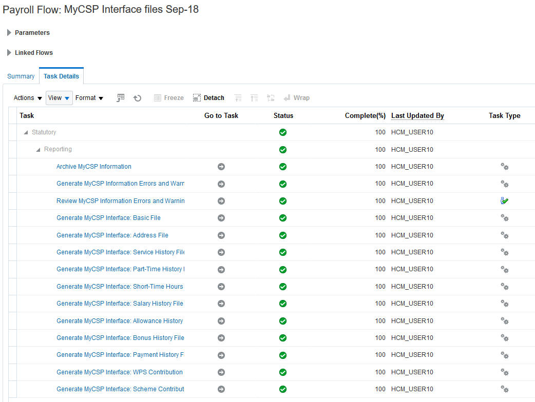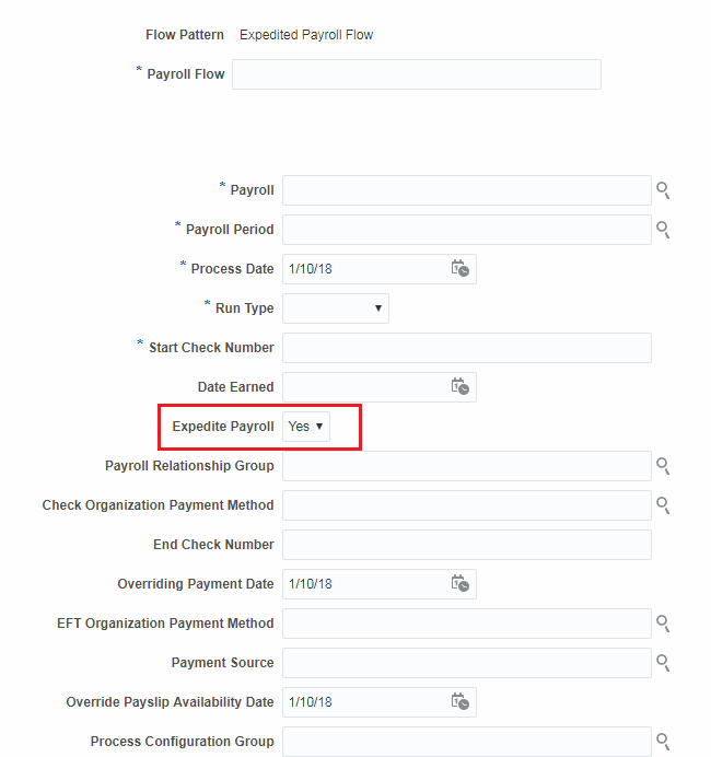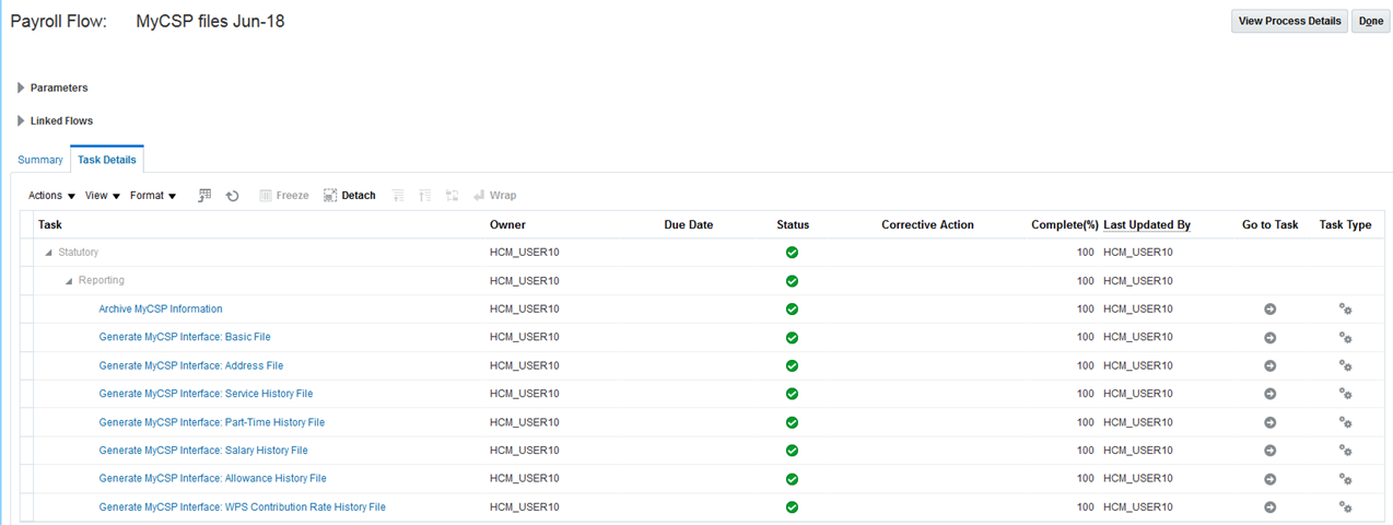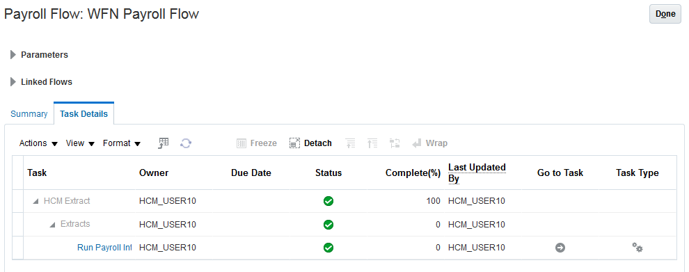 Payroll Task Flow Parameters